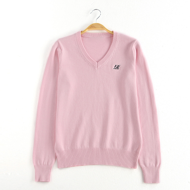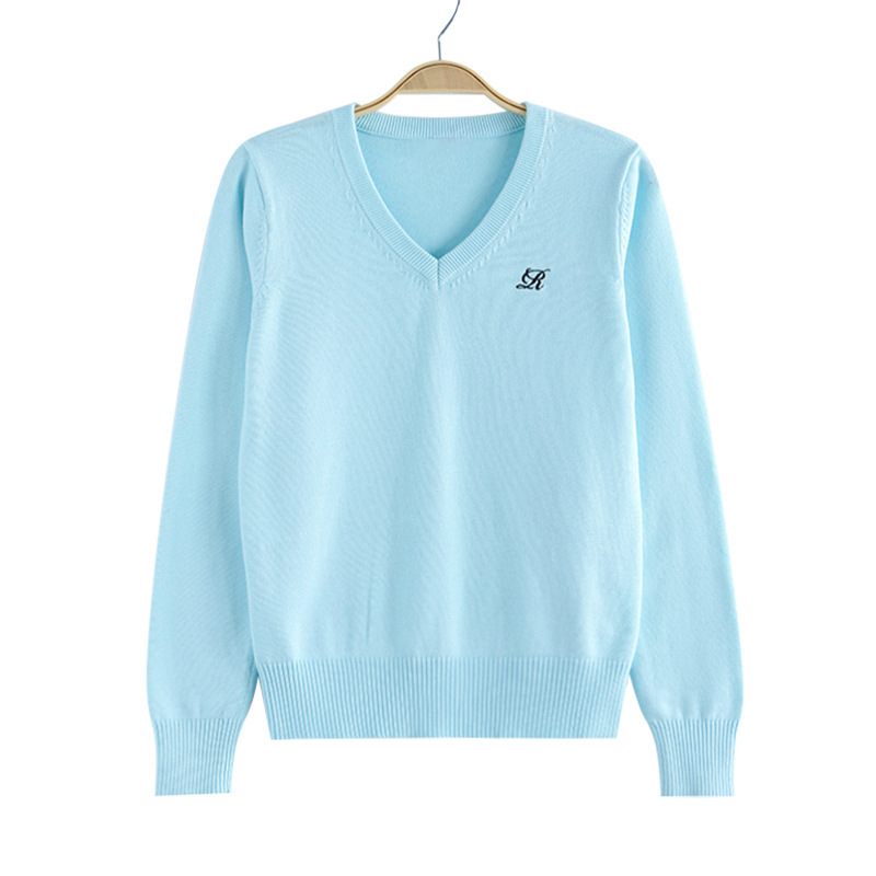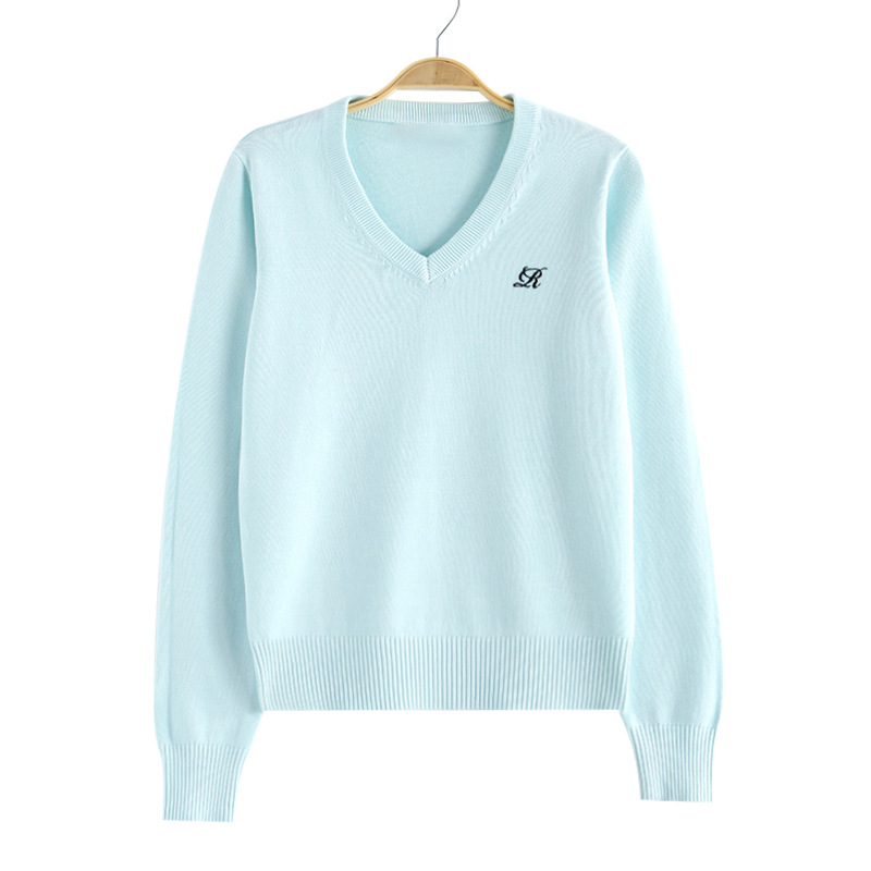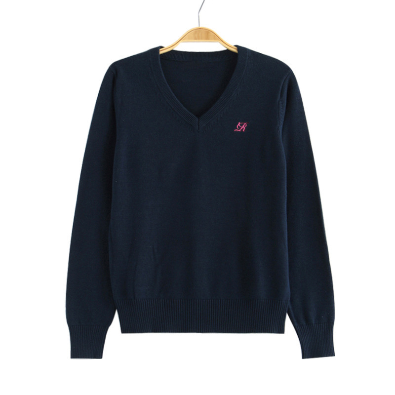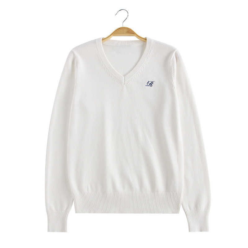 Chuandao & Shuiji Middle/Original JK 스웨터 세트 V-넥 풀오버 클래스는 가을과 겨울을위한 수 놓은 긴 소매 니트 스웨터스토어 가기