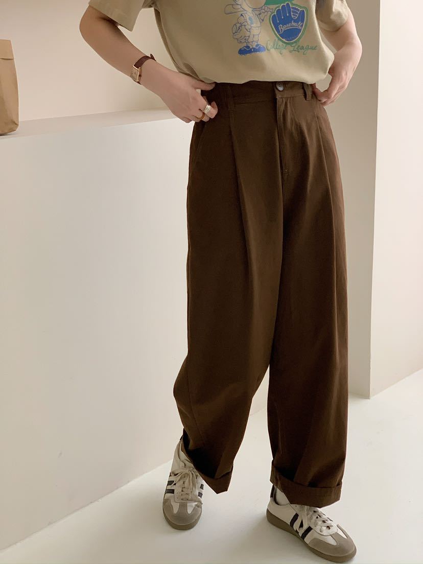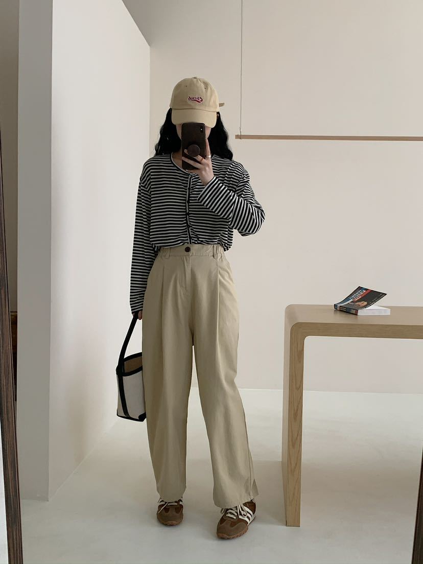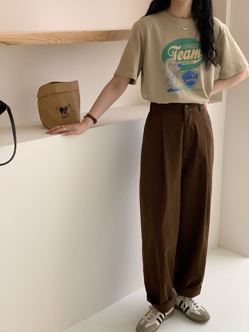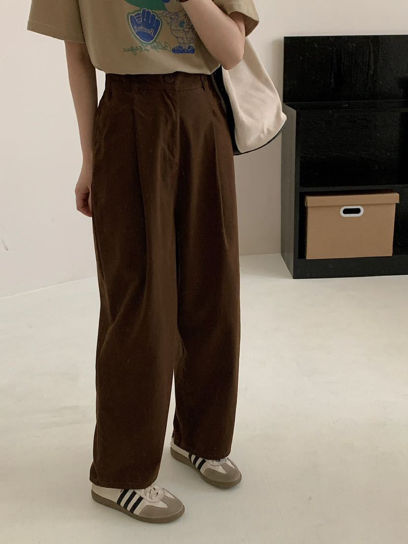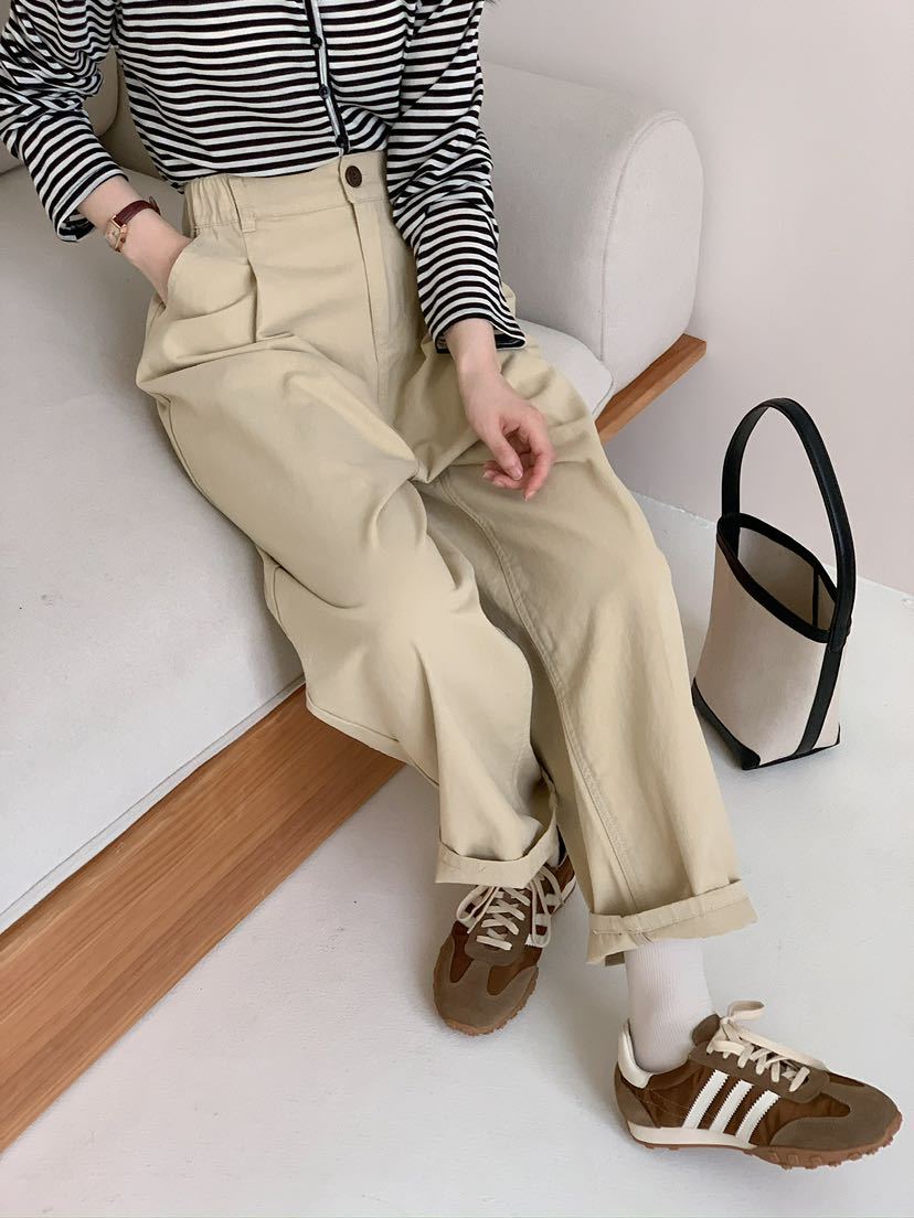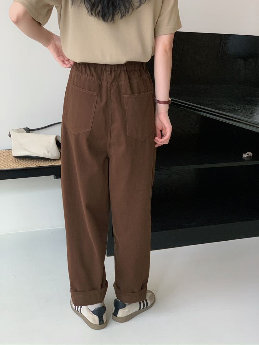 Net Edition Straight Leg Pants 2024 가을 예술적 간단한 한국 스타일 반 탄성 허리 느슨한 슬리밍 여성을위한 올 매치 캐주얼 바지스토어 가기