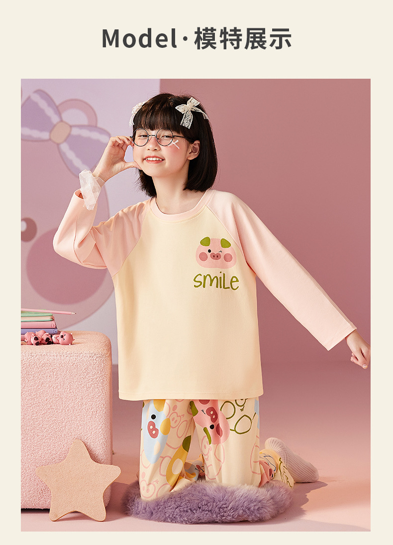 루피 잠옷 소녀 긴 소매 루비 비버 어린이 집 옷 가을 소녀 여름 2024 새로운 세트