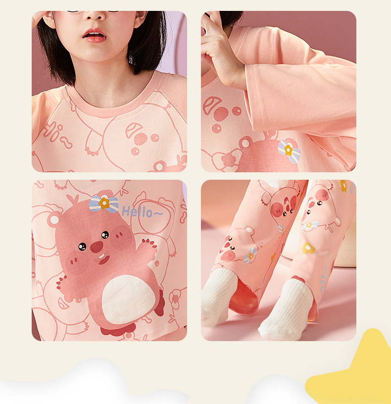 루피 잠옷 소녀 긴 소매 루비 비버 어린이 집 옷 가을 소녀 여름 2024 새로운 세트스토어 가기