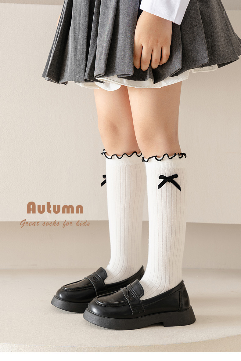 어린이 양말 도매 2024 봄과 가을 활 나무 귀 공주 양말 느슨한 흰색 파일 양말 종아리 양말스토어 가기