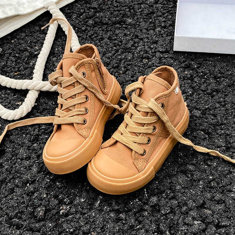 2025 봄 패션 트렌드 어린이 부드러운 밑창 어린이 신발 소녀 한국 스타일 편안한 캐주얼 신발 소년 하이 탑 캔버스 신발