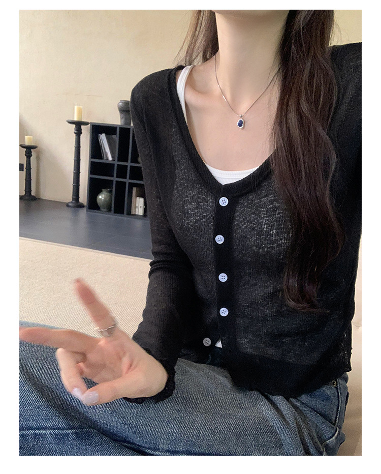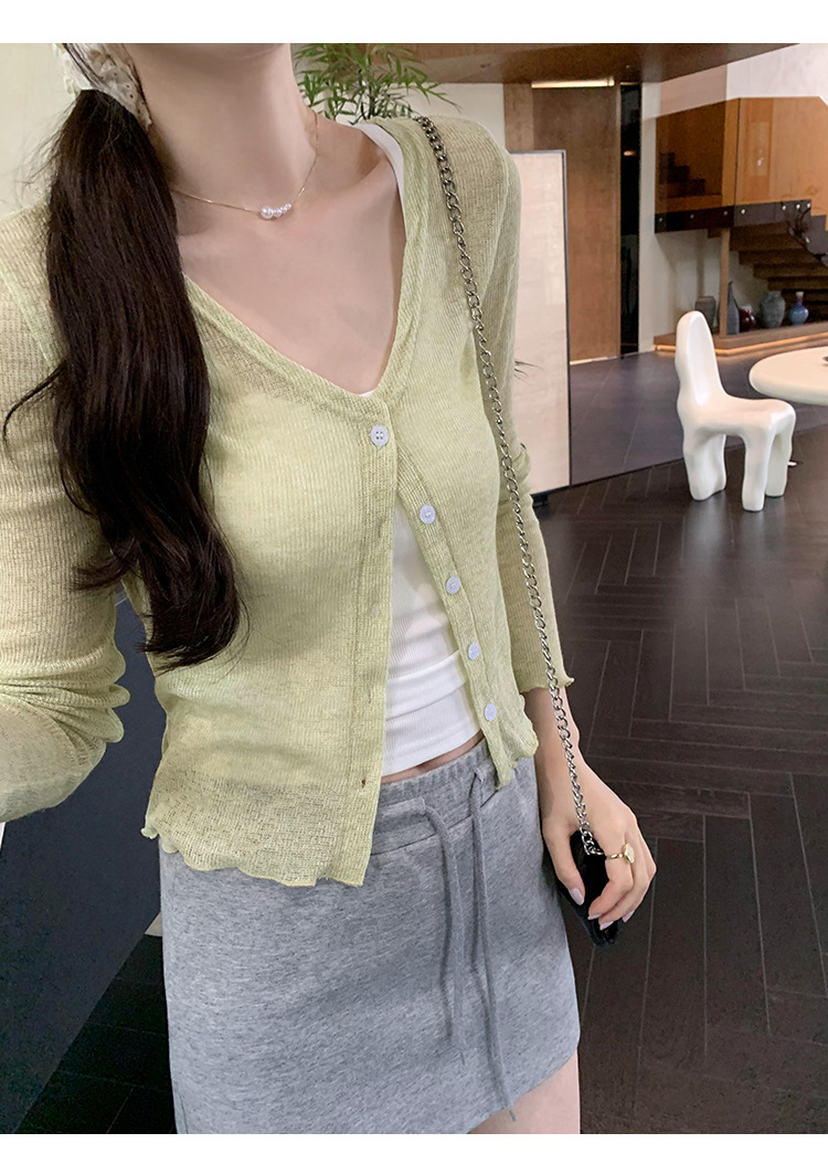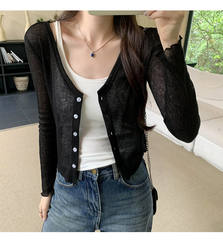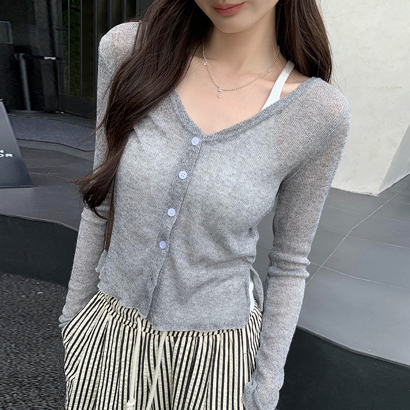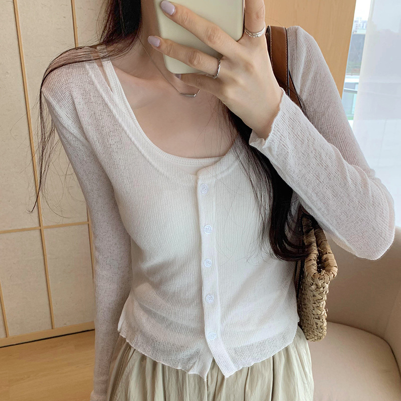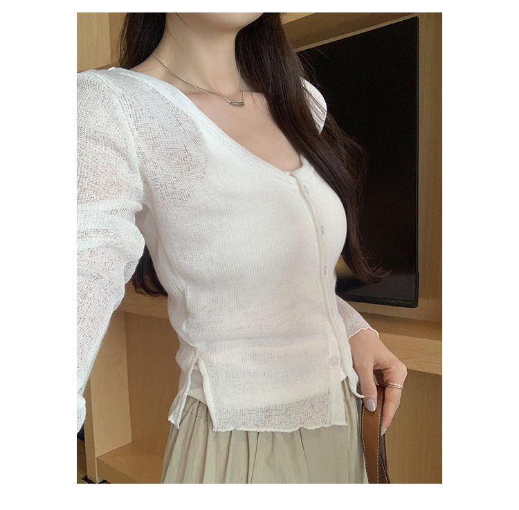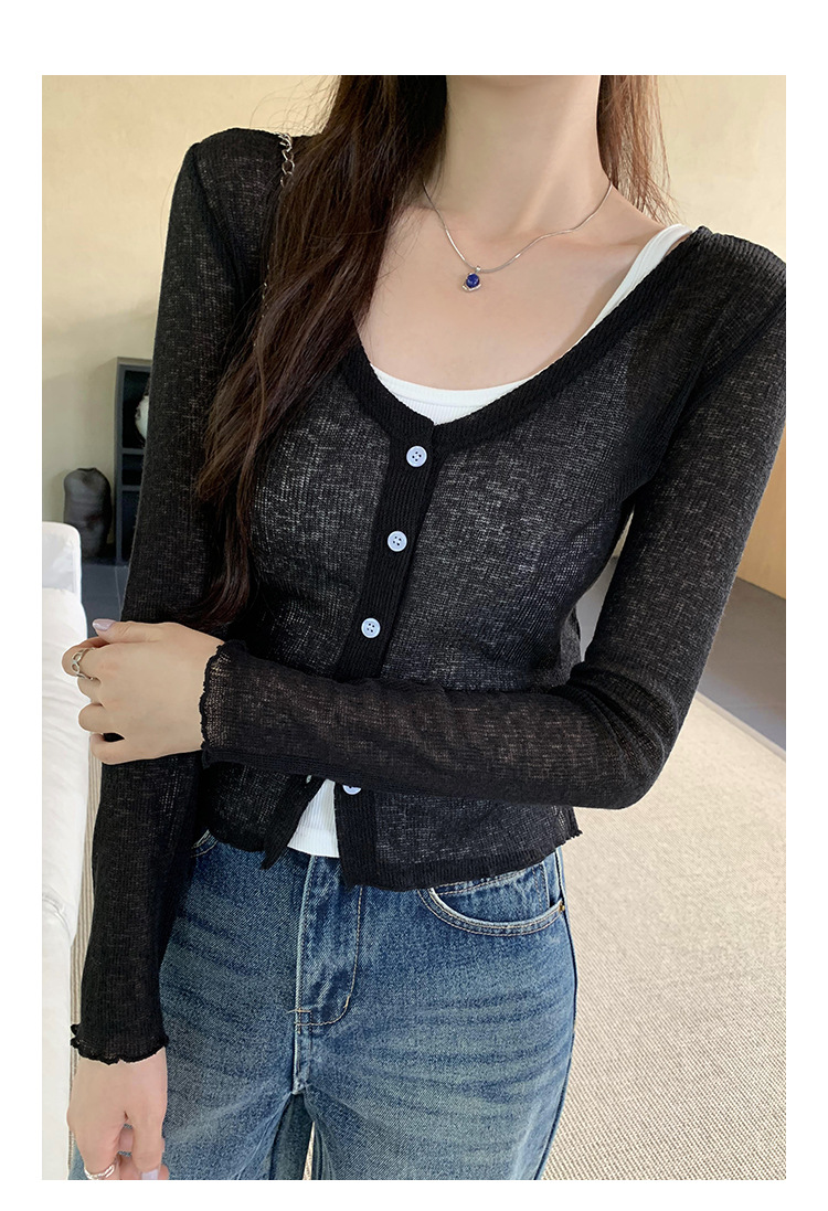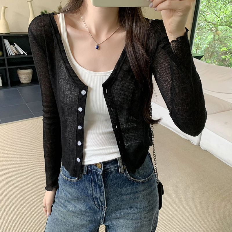 한국식 고급 센스 눈송이 얇은 긴팔 카디건 선 스크린 의류 여성 2024 년 초가을 새 우아한 올매치 코트스토어 가기