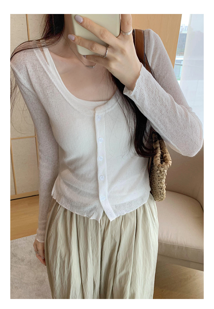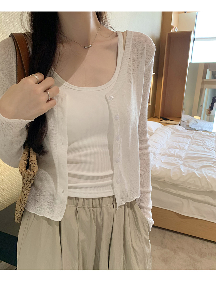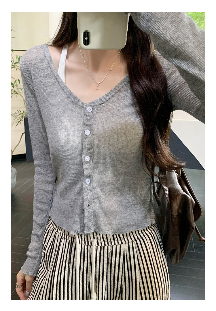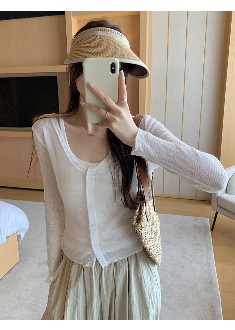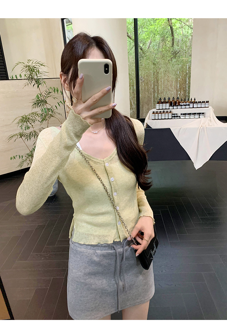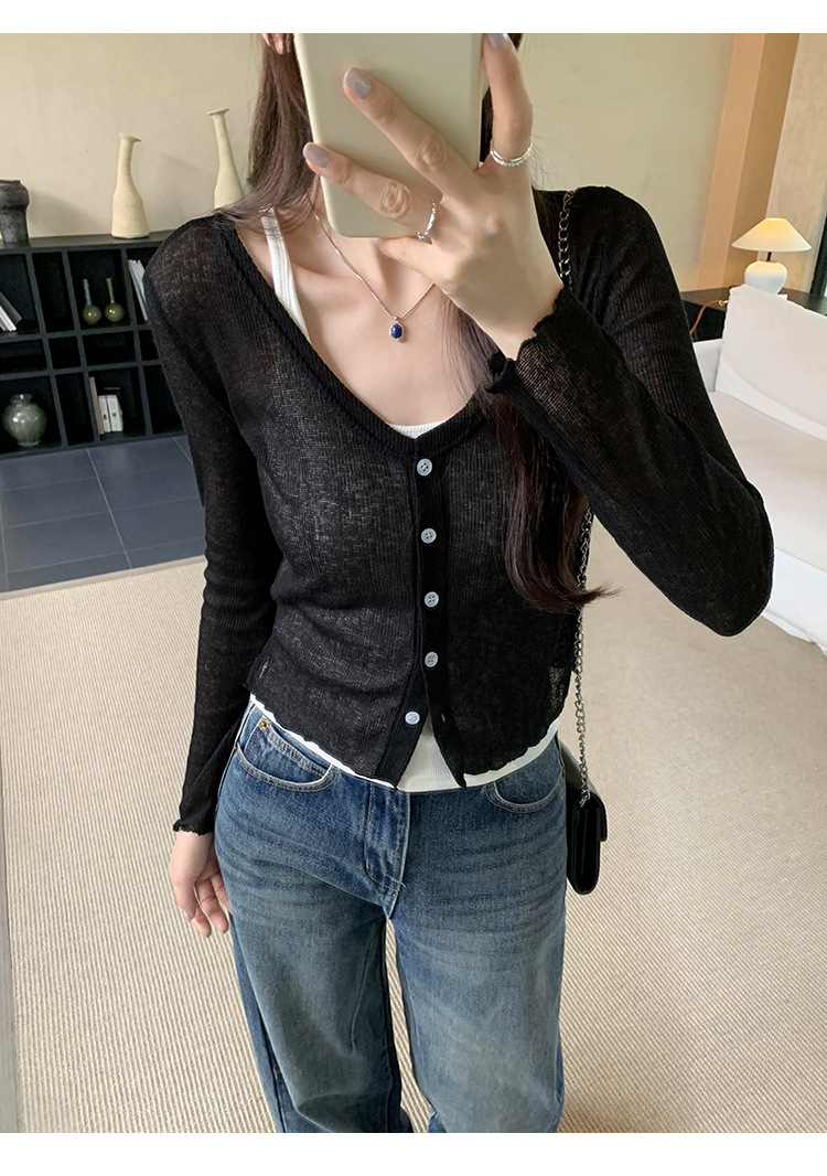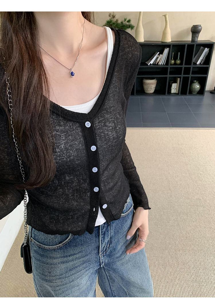 한국식 고급 센스 눈송이 얇은 긴팔 카디건 선 스크린 의류 여성 2024 년 초가을 새 우아한 올매치 코트스토어 가기