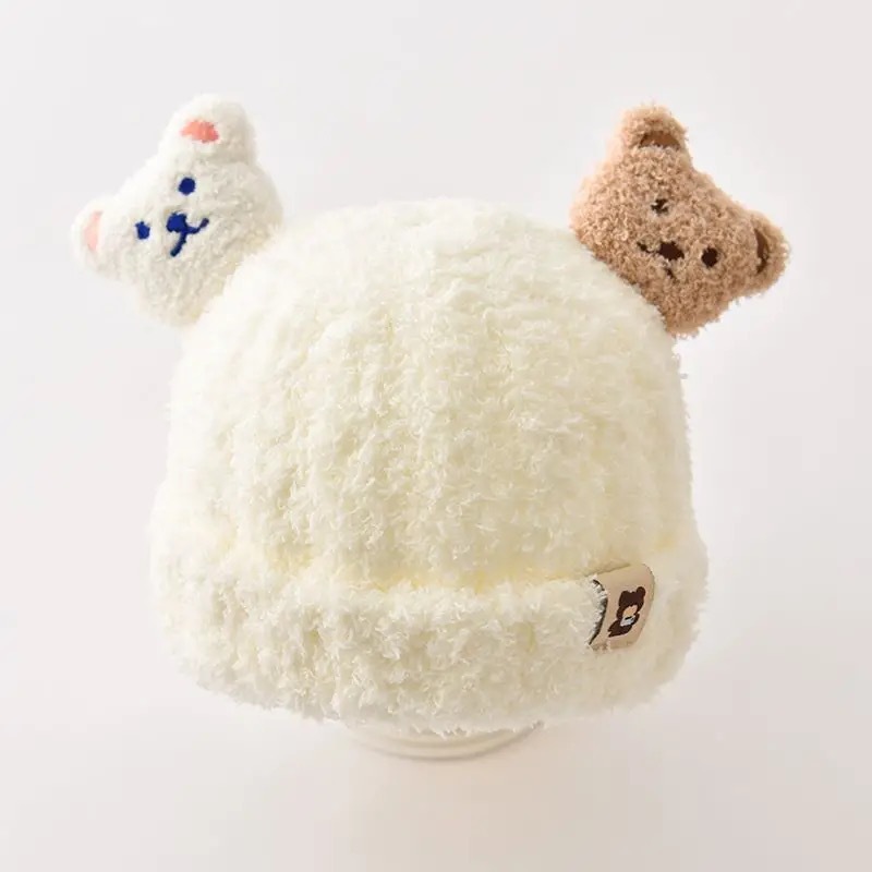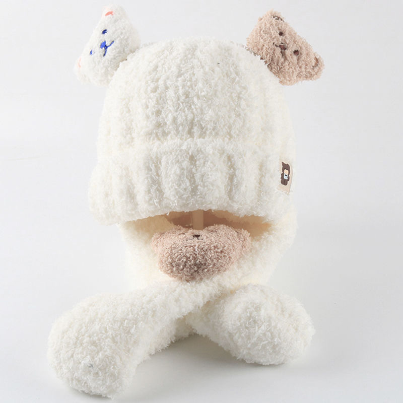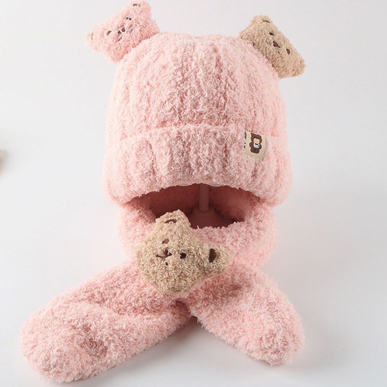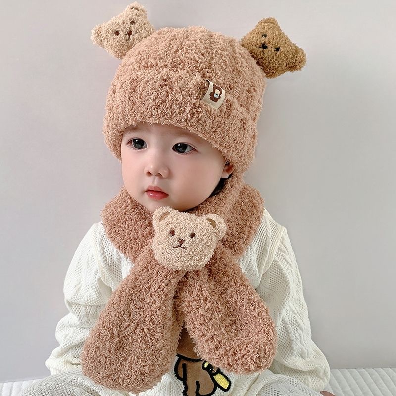 아기 모자 가을과 겨울 봉제 스카프 투피스 세트 아기 소년과 소녀 곰 귀여운 따뜻한 두꺼운 아기 모자스토어 가기
