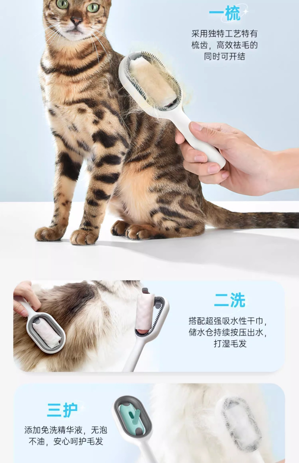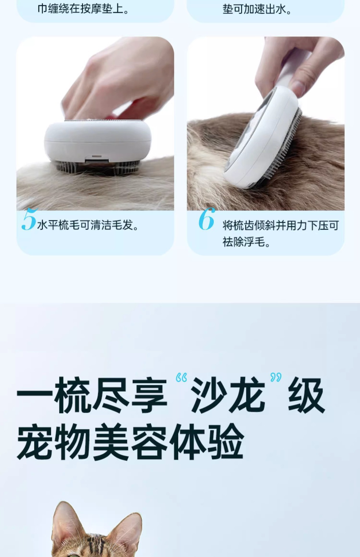 애완동물용 물통 고양이 빗, 고양이 털 관리 전용 청소 빗, 애완용품 털 제거 및 물 주입 빗스토어 가기
