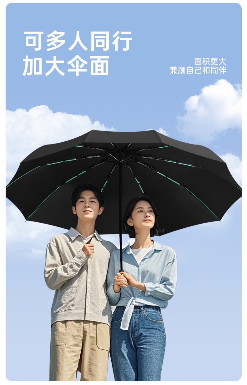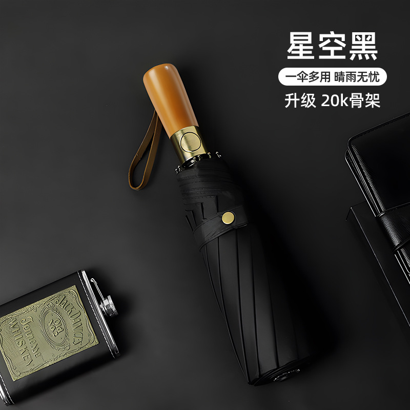 자동 대형 링 버클 써니 우산 바람 저항하는 검은 접착제 햇빛 우산 접는 후크 남자와 여자의 고급 감각 햇빛 우산