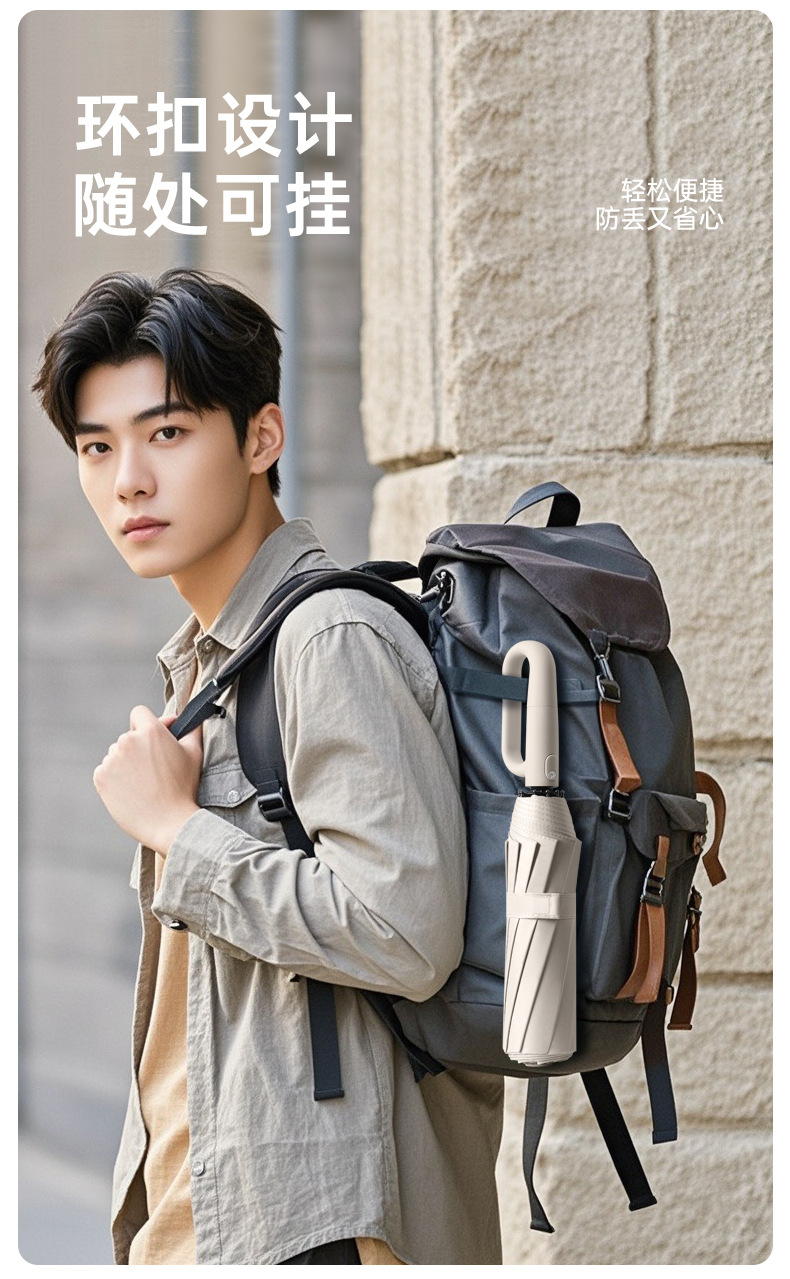 자동 대형 링 버클 써니 우산 바람 저항하는 검은 접착제 햇빛 우산 접는 후크 남자와 여자의 고급 감각 햇빛 우산스토어 가기