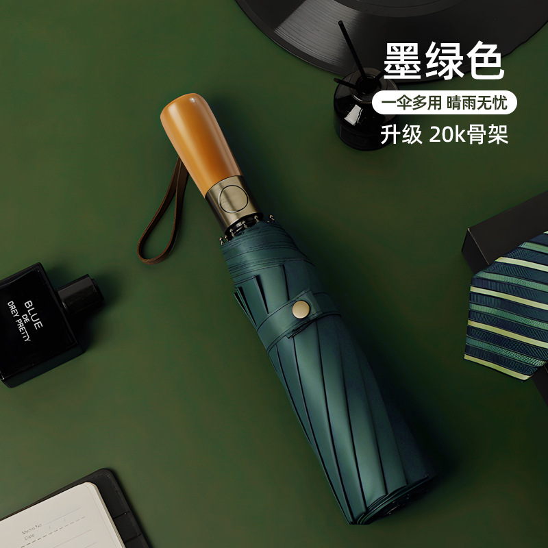 • 자동 20본(가벼운 고급 나무 손잡이 써니우산) 다크그린