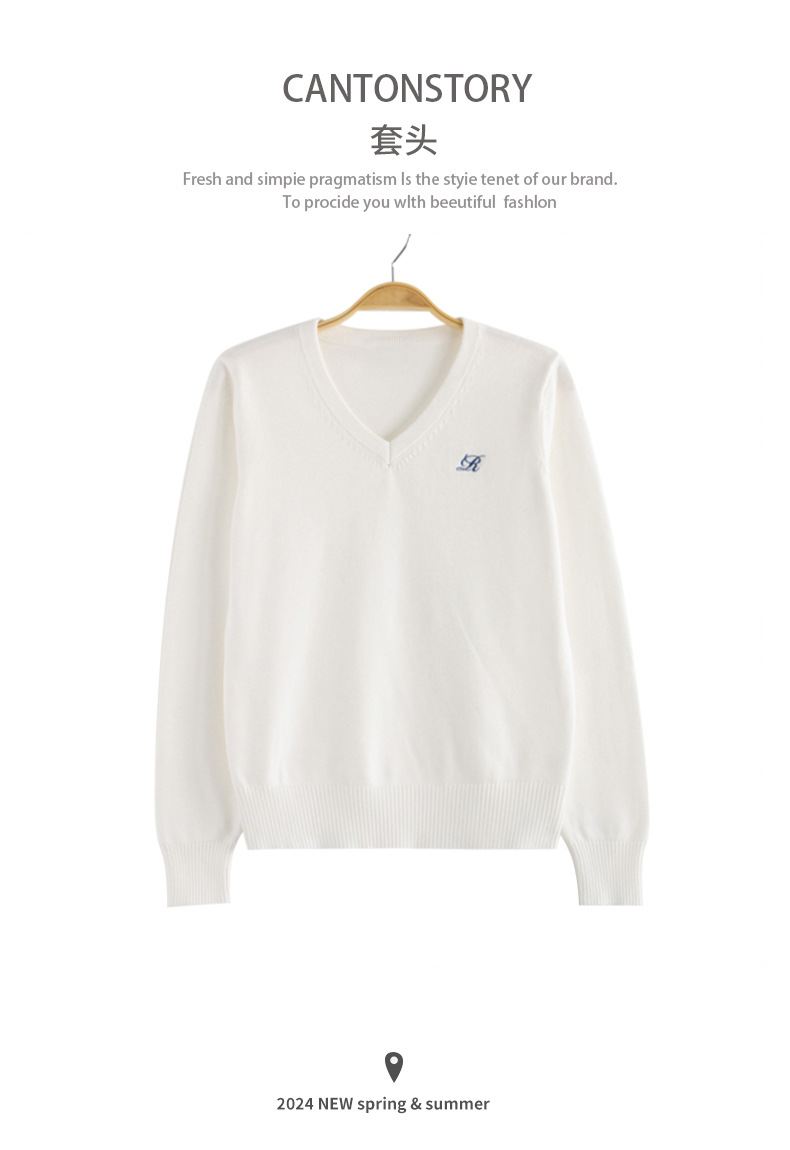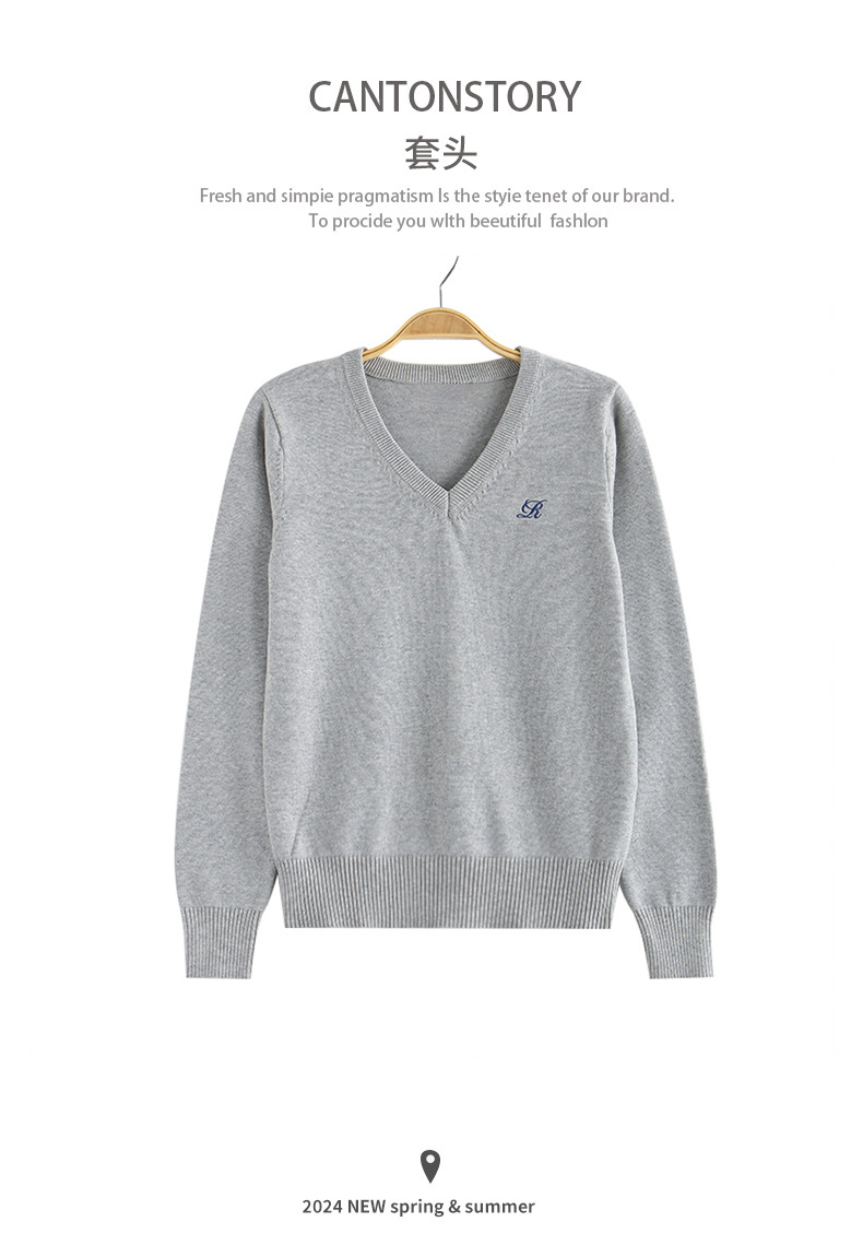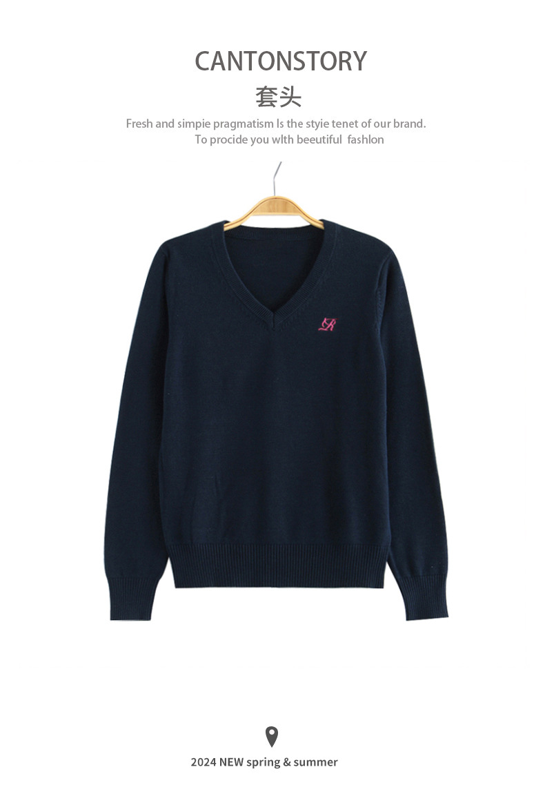 가와시마 & 스웨터 슈이지 중간/오리지널 JK 스웨터 세트 V 넥 풀오버 클래스 착용 자수 긴 소매 니트 스웨터스토어 가기