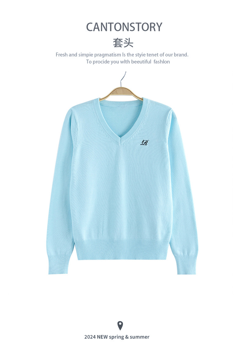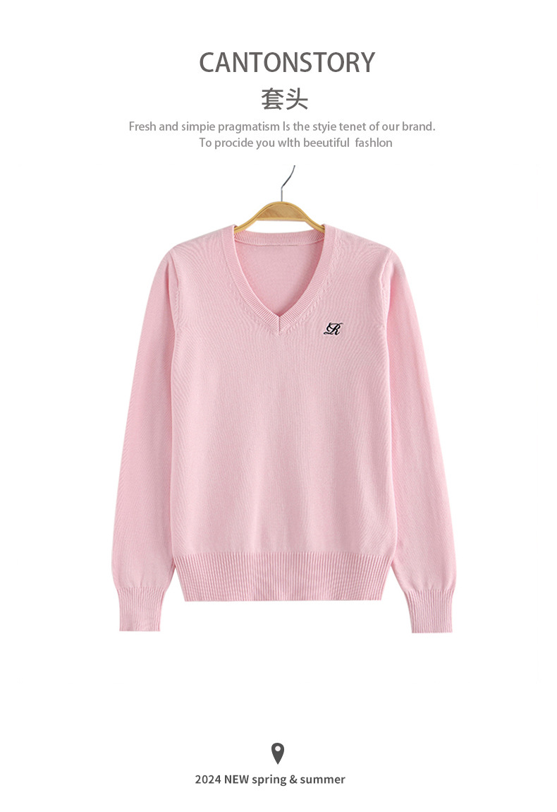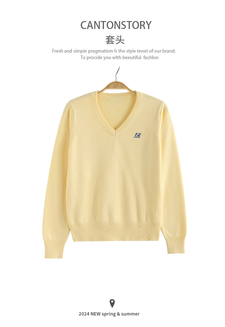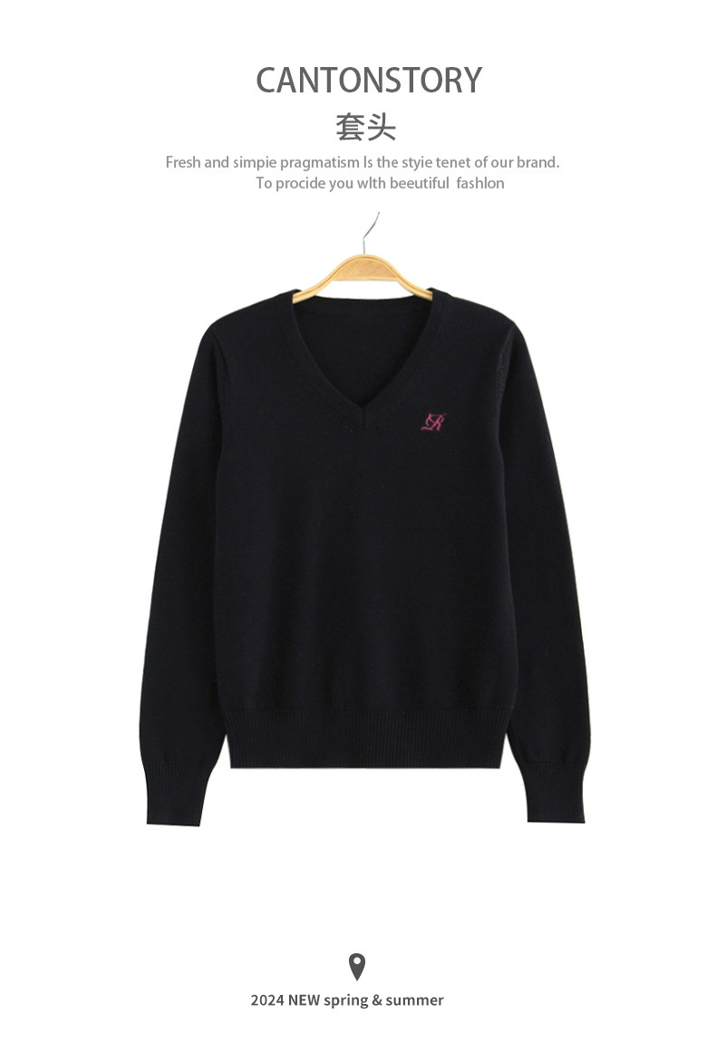 가와시마 & 스웨터 슈이지 중간/오리지널 JK 스웨터 세트 V 넥 풀오버 클래스 착용 자수 긴 소매 니트 스웨터스토어 가기