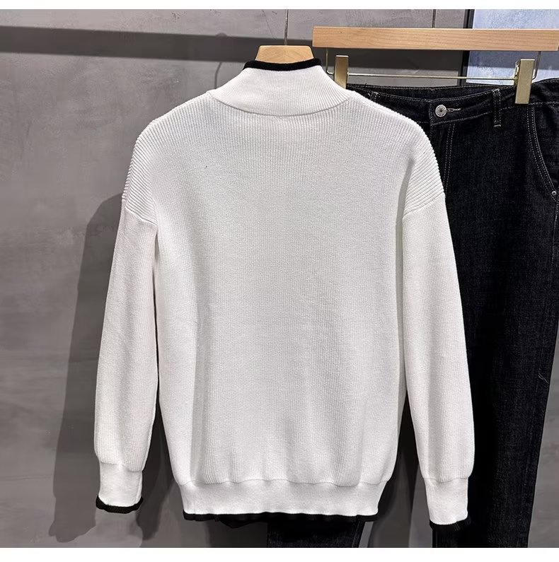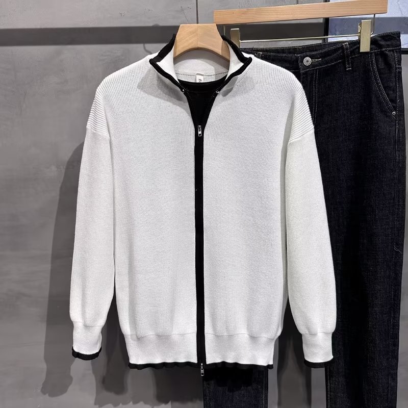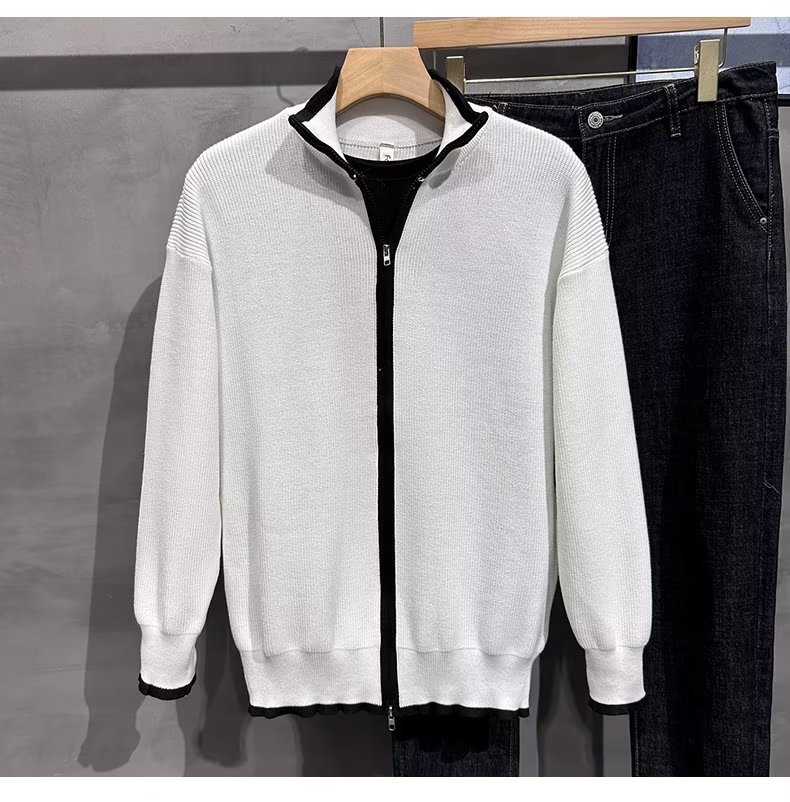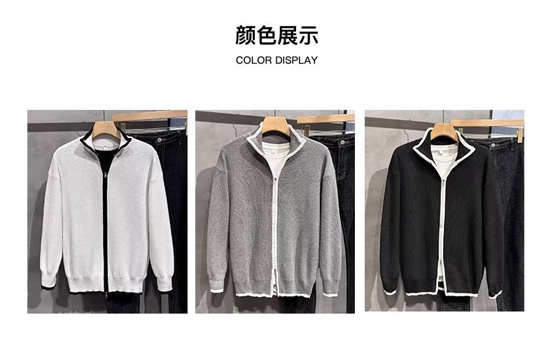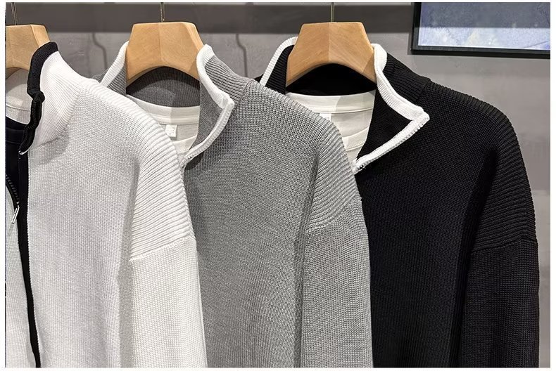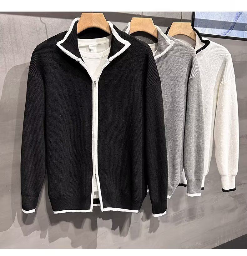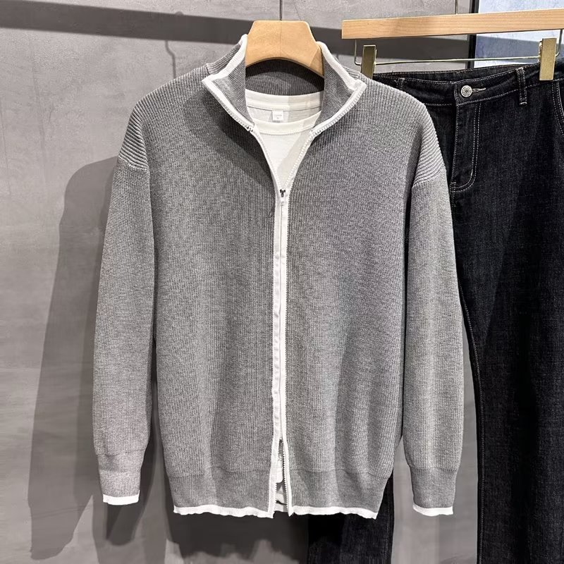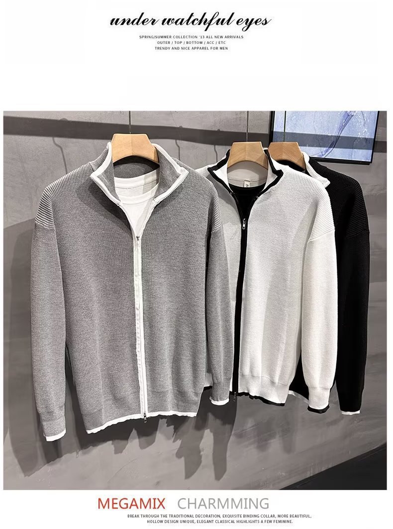 카디건 스웨터 남자 코트 2023 가을과 겨울 새로운 빛 성숙한 바람 지퍼 수직 칼라 니트 스웨터 겉옷 탑 트렌디스토어 가기