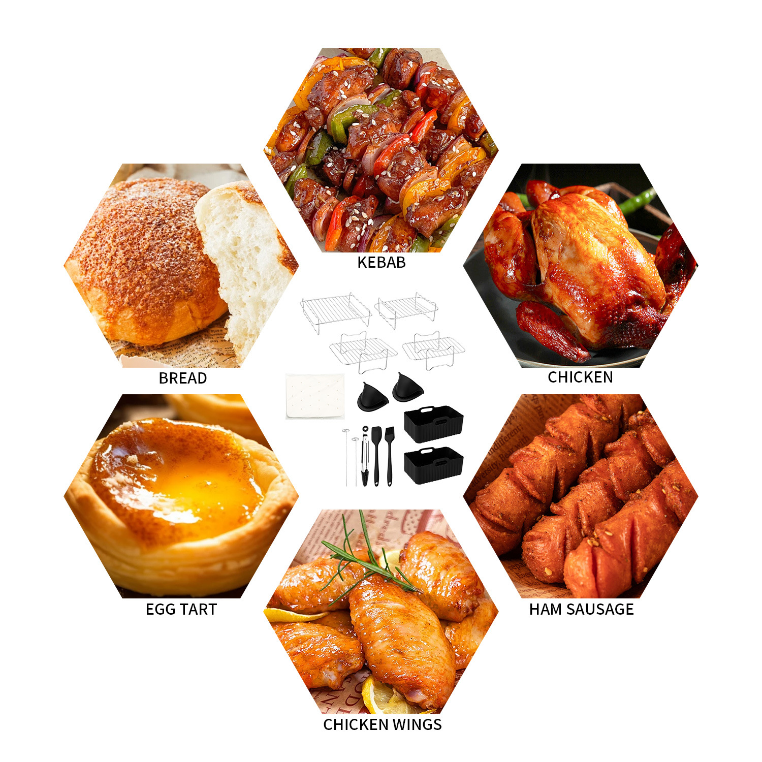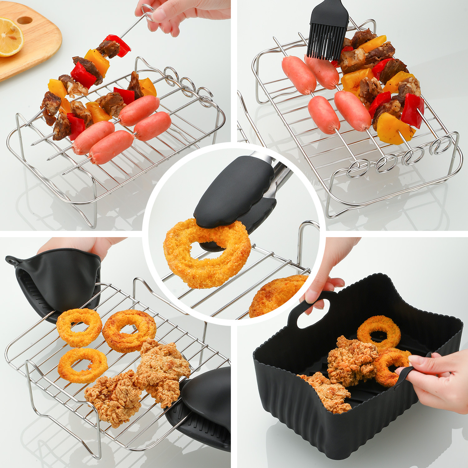 201 스테인레스 스틸 에어 프라이어 내부 그릴 구이 바늘 가정용 스퀘어 스팀 랙 액세서리 세트