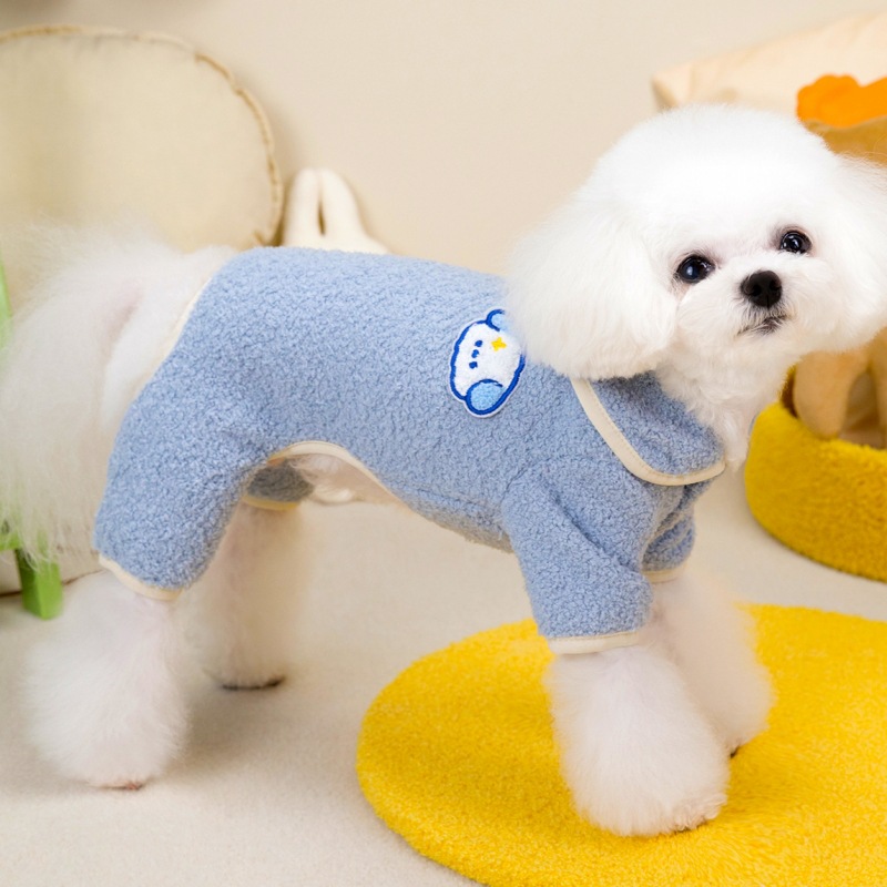 개 옷 겨울 잡아 당기기 반지 네 다리 양털 테디 베어 작은 개 애완 동물 가을과 겨울 두꺼운 따뜻한 옷