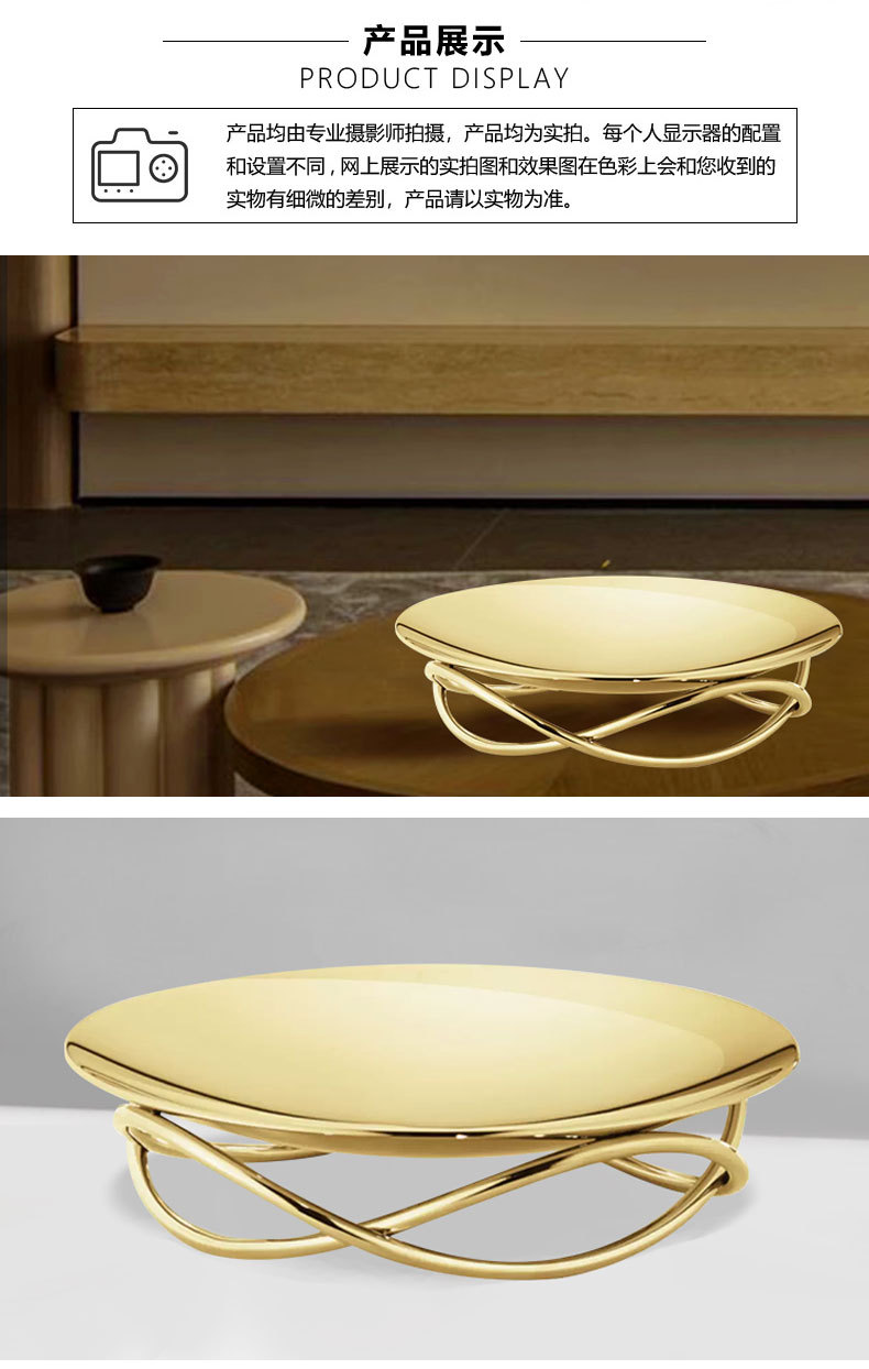 간단한 지금 가벼운 럭셔리 황금 그릇 라운드 과일 접시 장식품 판매 사무실 거실 복도 가정용 저장 판 장식