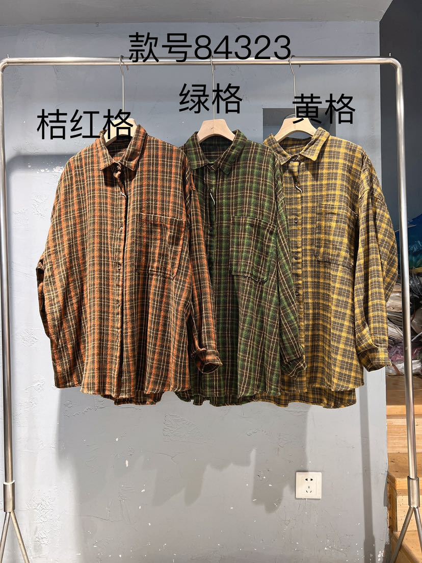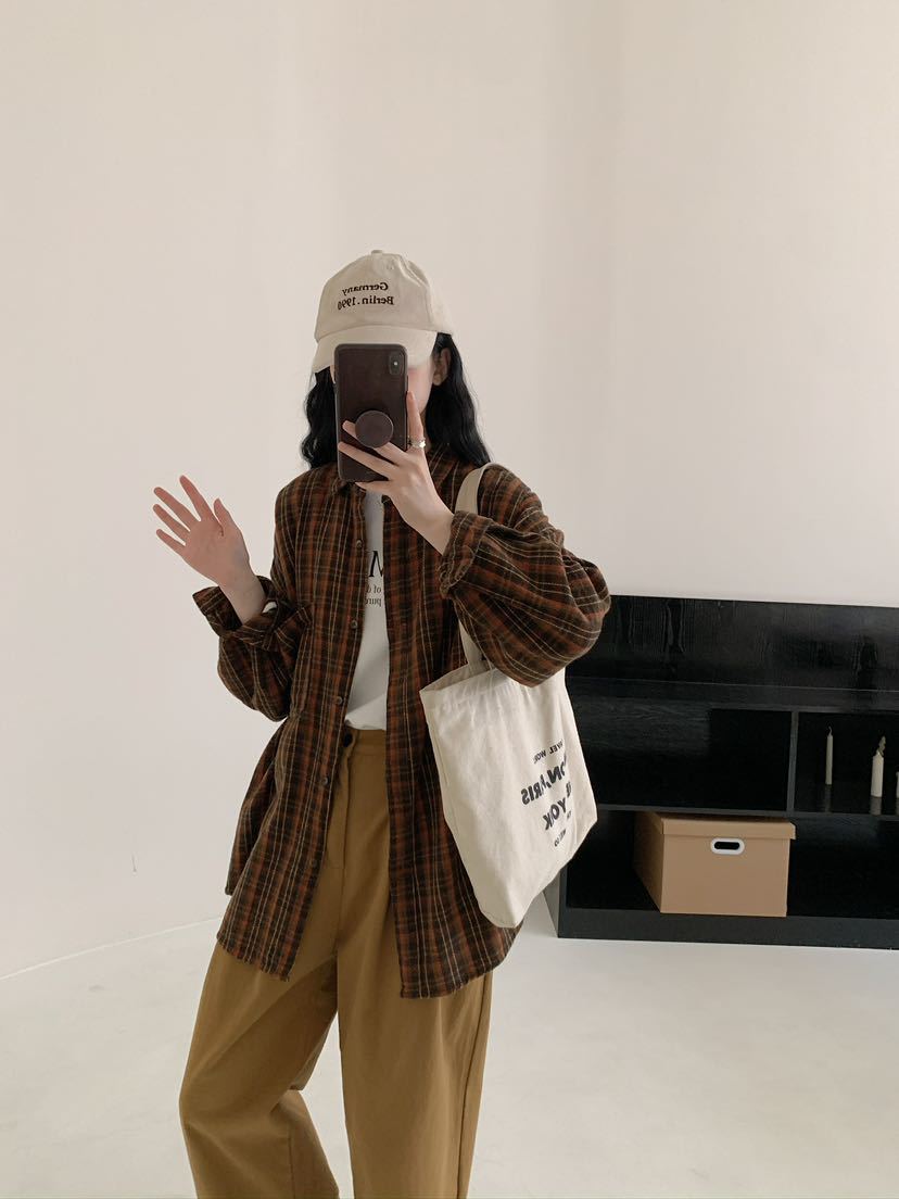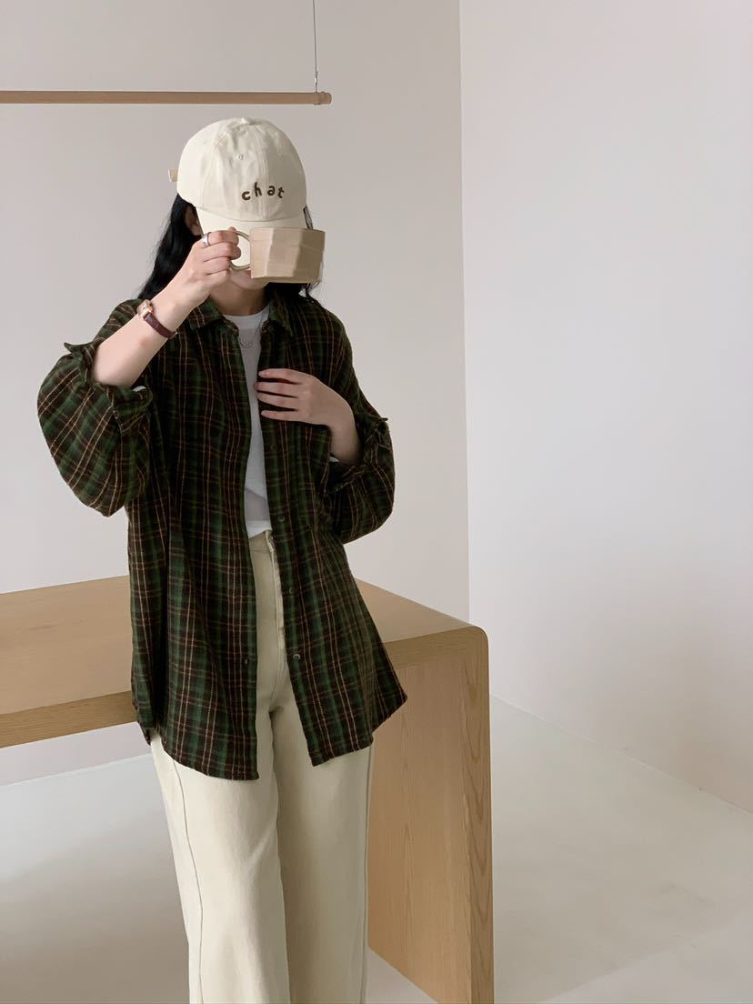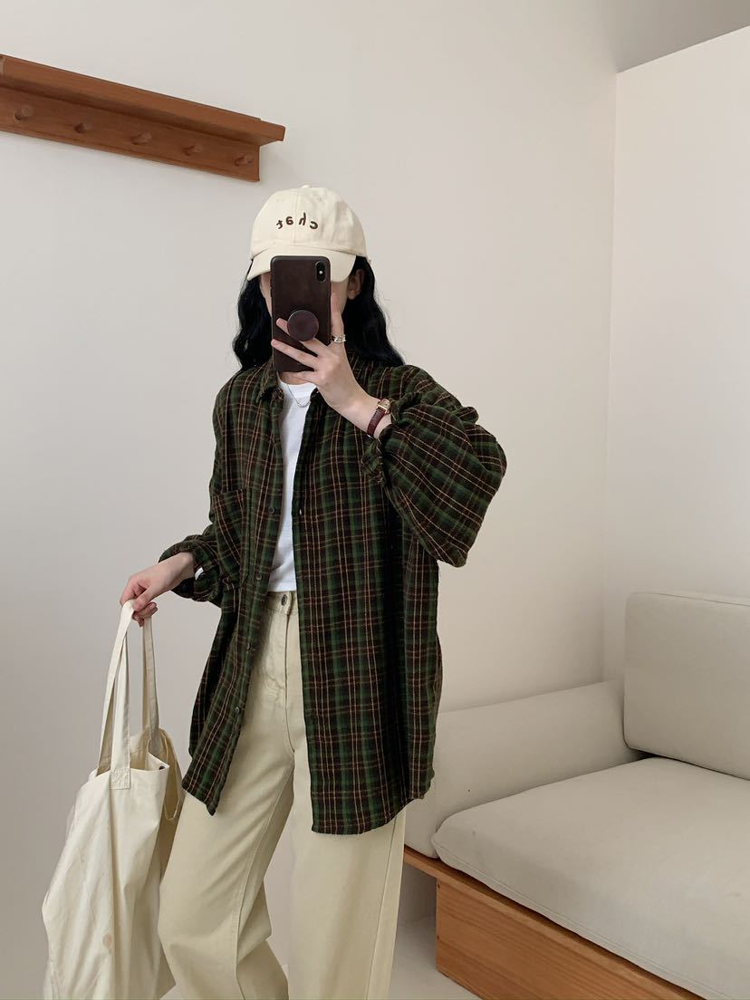 2024 년 가을을위한 격자 무늬 긴팔 셔츠 한국 스타일 유행 간단한 옷깃 싱글 브레스트 올 매치 루즈 캐주얼 셔츠스토어 가기