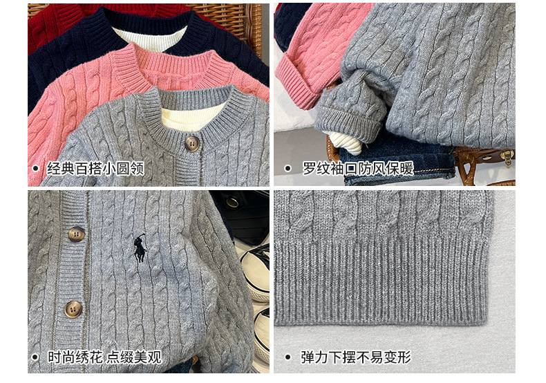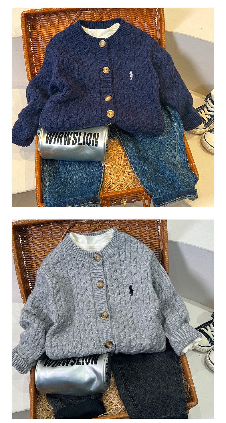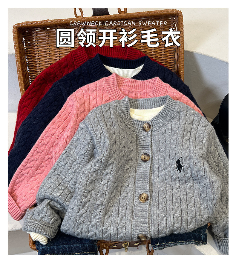 자수 가디건 라운드넥 스웨터 남녀 아동 가을 겨울 아동용 코트 레트로 니트 스타일 한국판 ins 도매스토어 가기