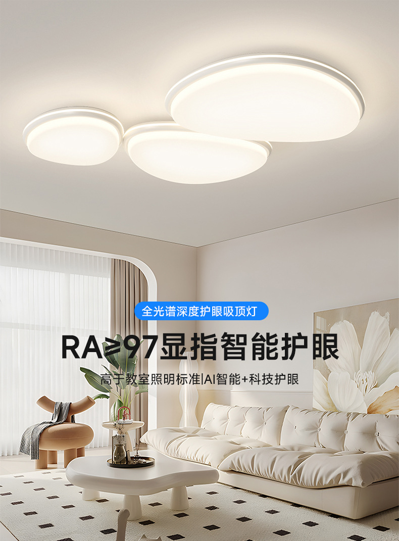 크림 바람 거실 메인 램프 현대 간단한 전체 스펙트럼 눈 보호 천장 램프 2024 새로운 대기 중산 램프