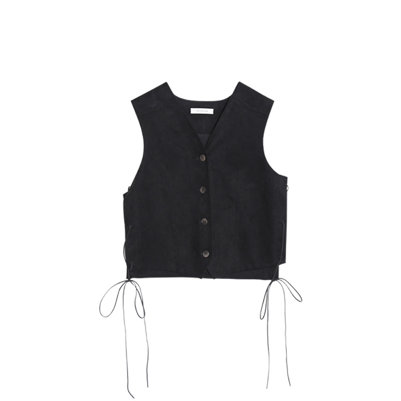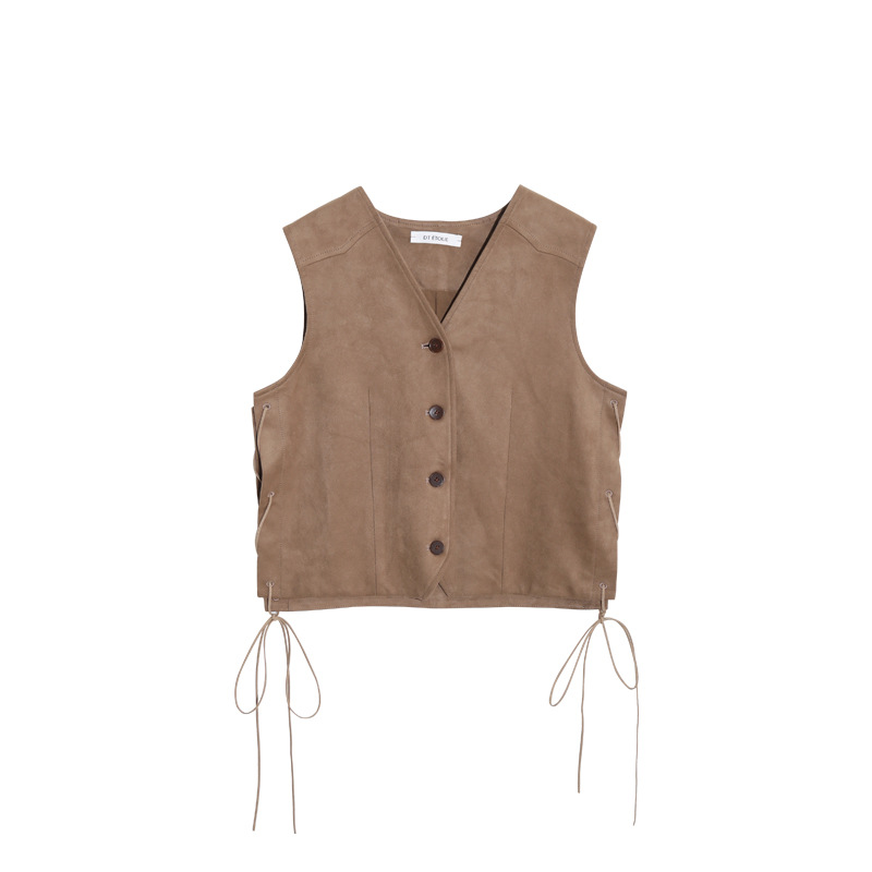 [환불, 변화 없음] 레트로 디자인 센스 스택 스웨이드 V-넥 조끼 여성 패션 여성 쇼트탑