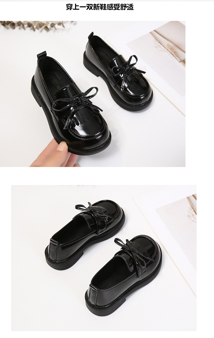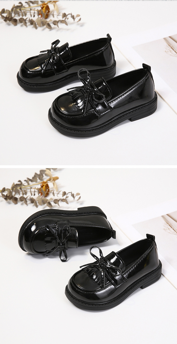 소녀 신발 부드러운 밑창 가죽 신발 2024 봄과 가을 새로운 술 활 공주 신발 블랙 밝은 가죽 로퍼스토어 가기