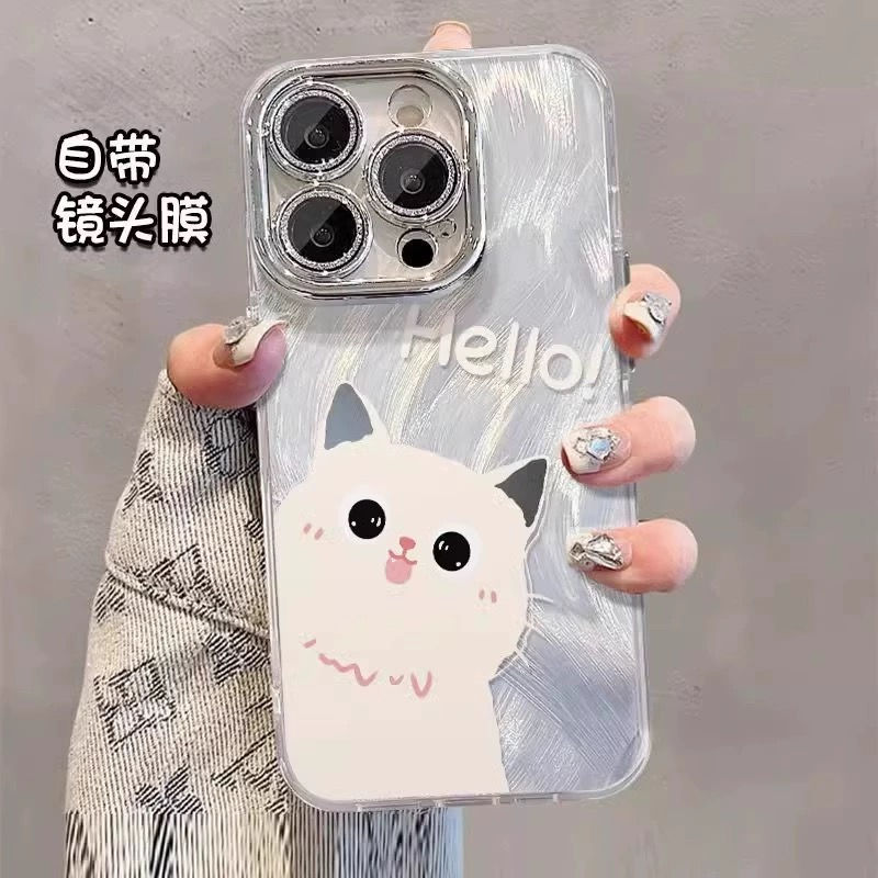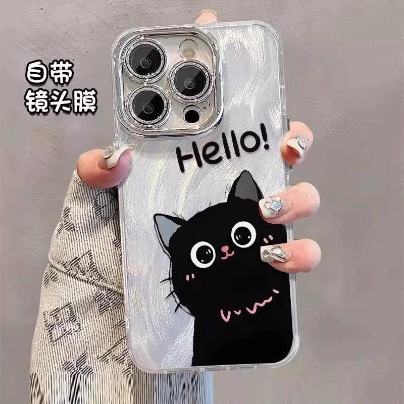 自带镜头膜羽纱猫咪苹果15promax手机壳14可爱iPhone13高级12女11스토어 가기