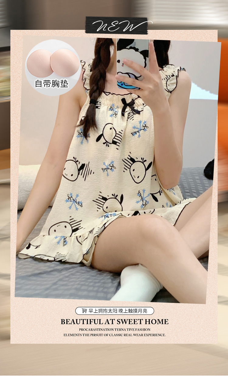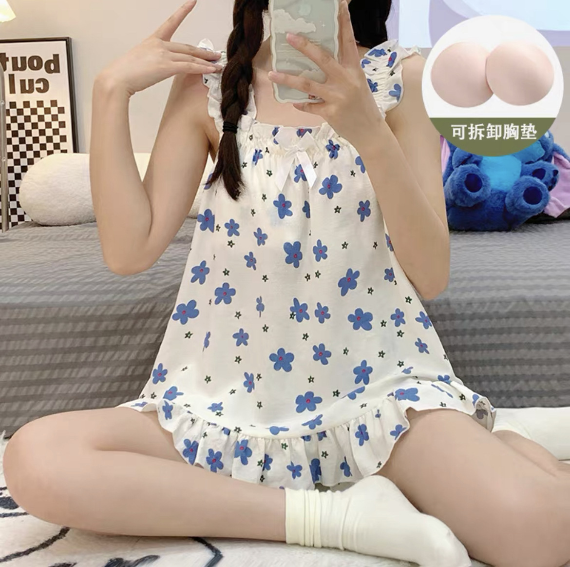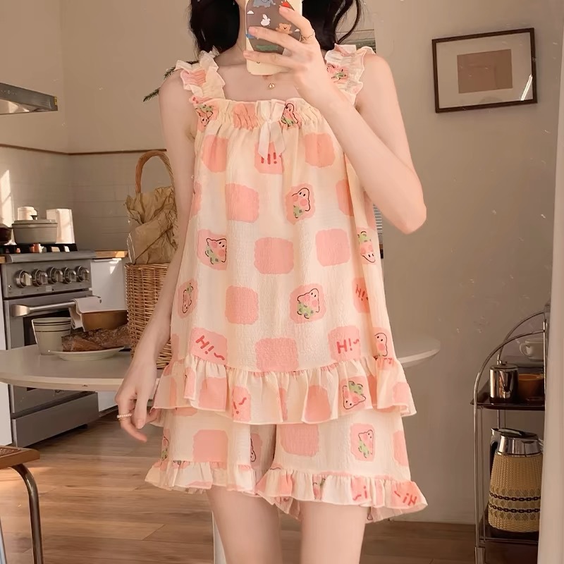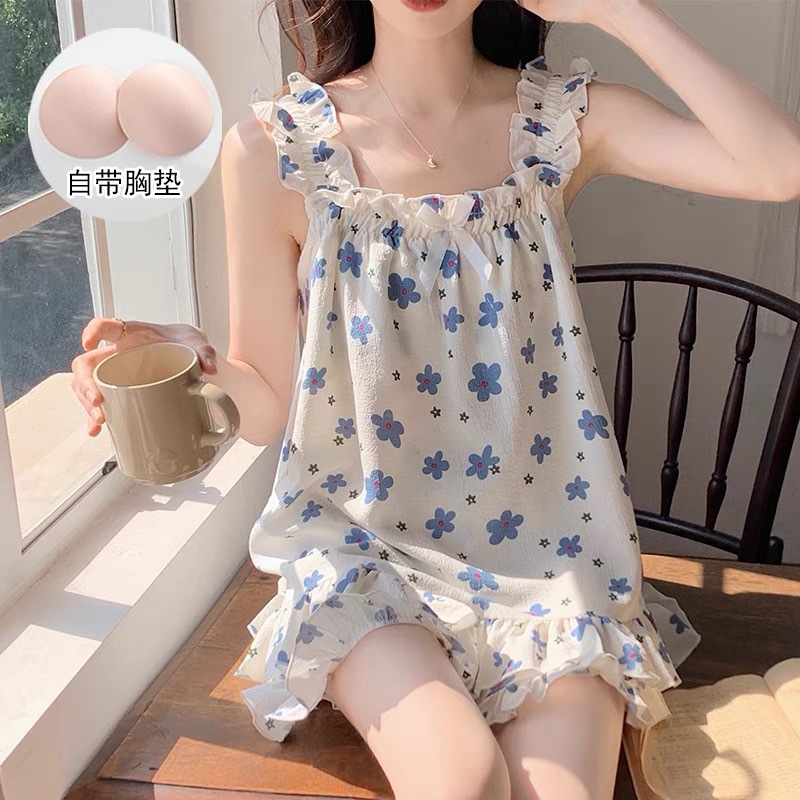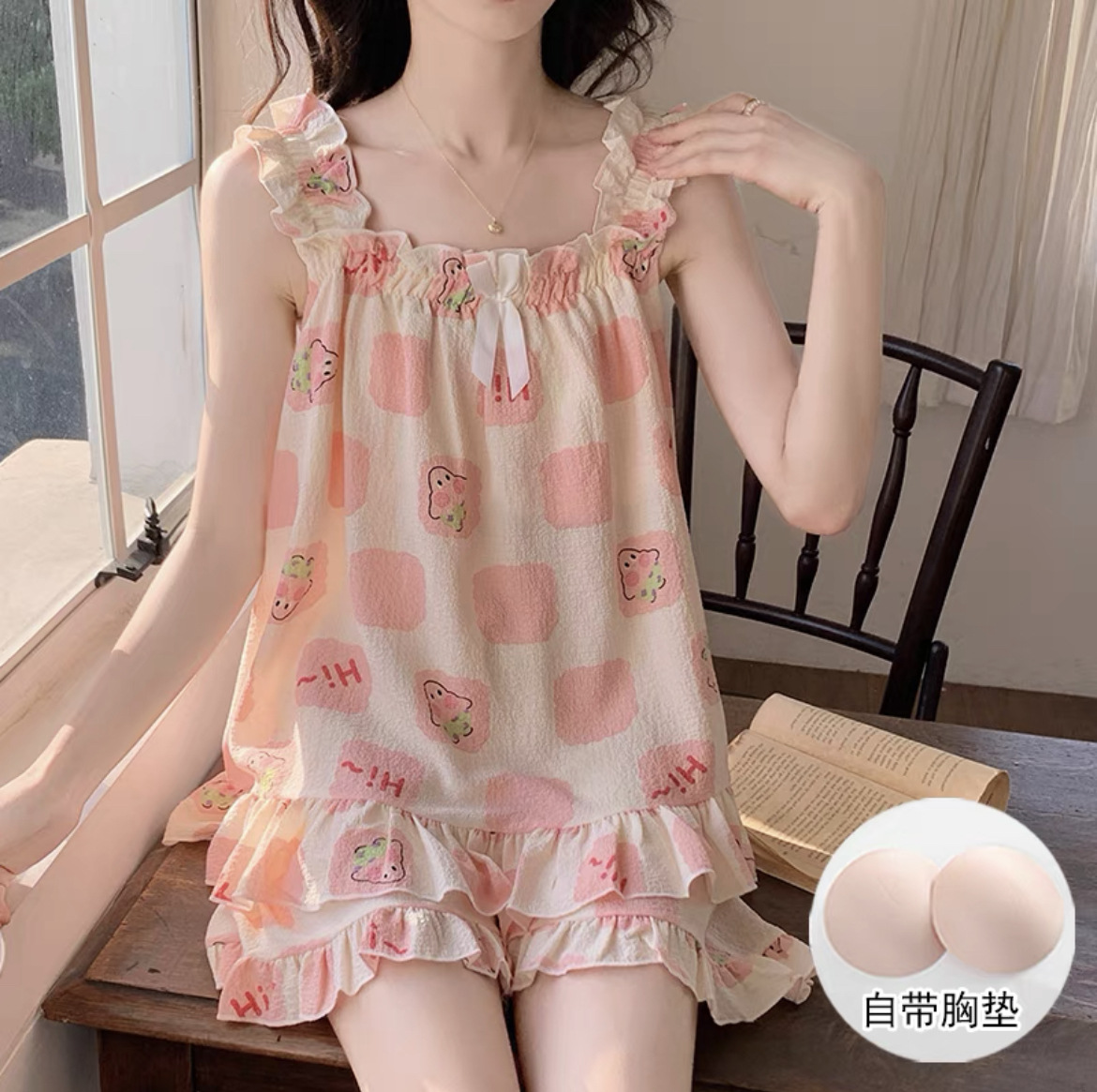 여름 여성용 버블 주름 잠옷, 가슴 패드 포함, 버블 주름 브라 프리, 여성용 스위트 홈웨어, 파자마스토어 가기