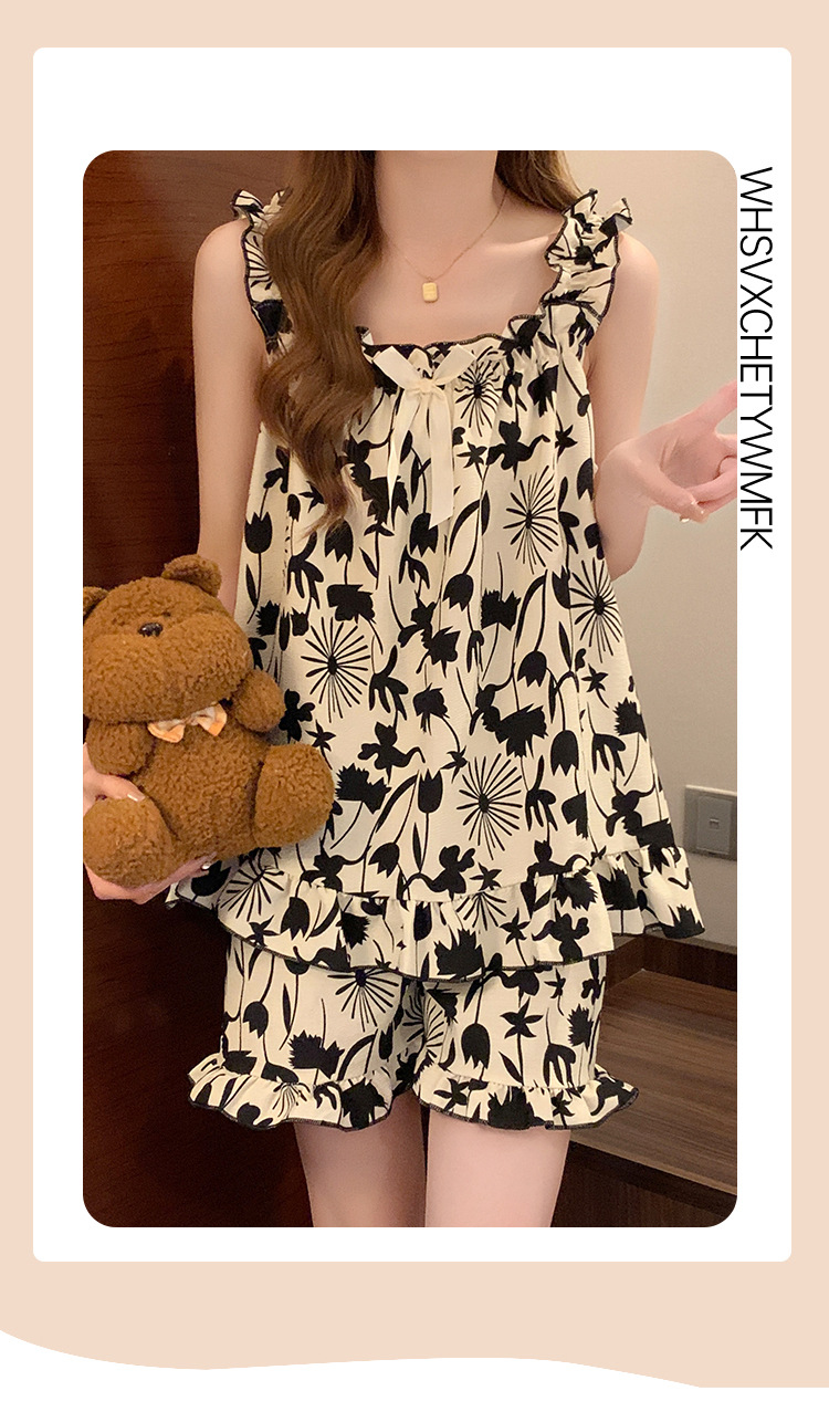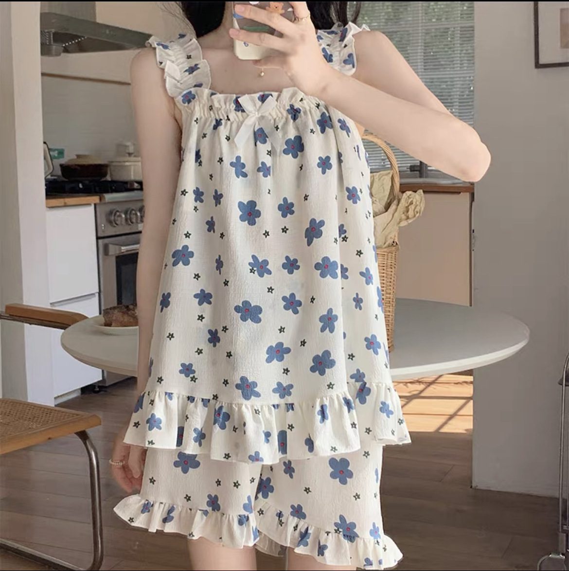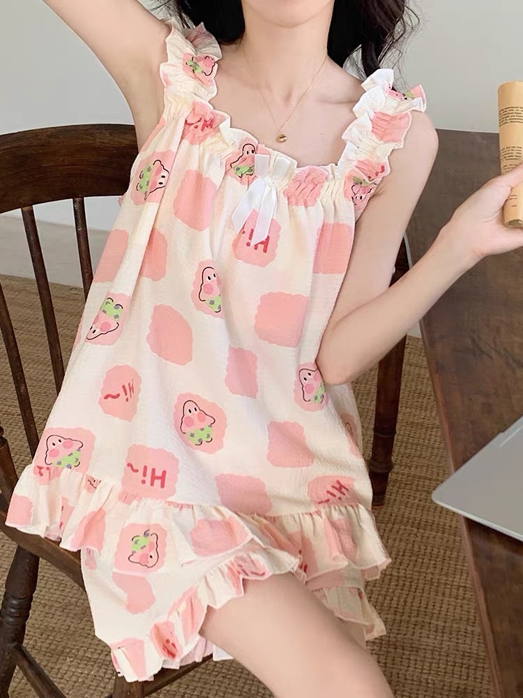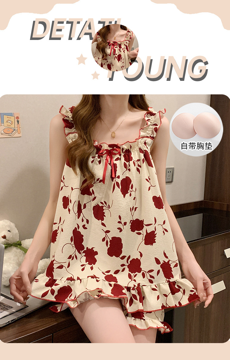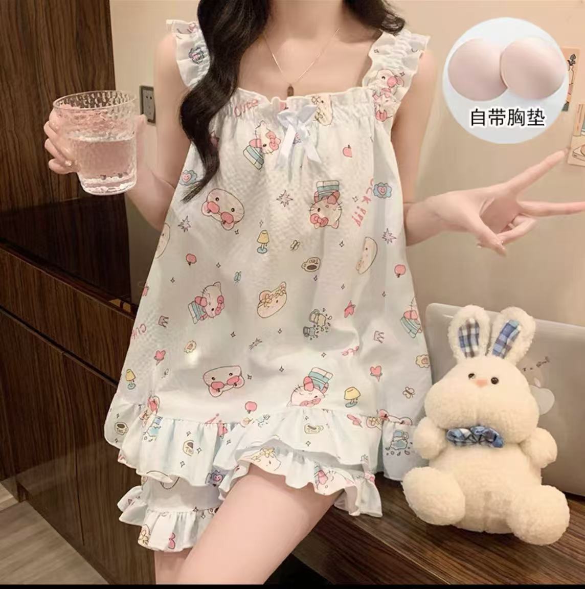 여름 여성용 버블 주름 잠옷, 가슴 패드 포함, 버블 주름 브라 프리, 여성용 스위트 홈웨어, 파자마스토어 가기