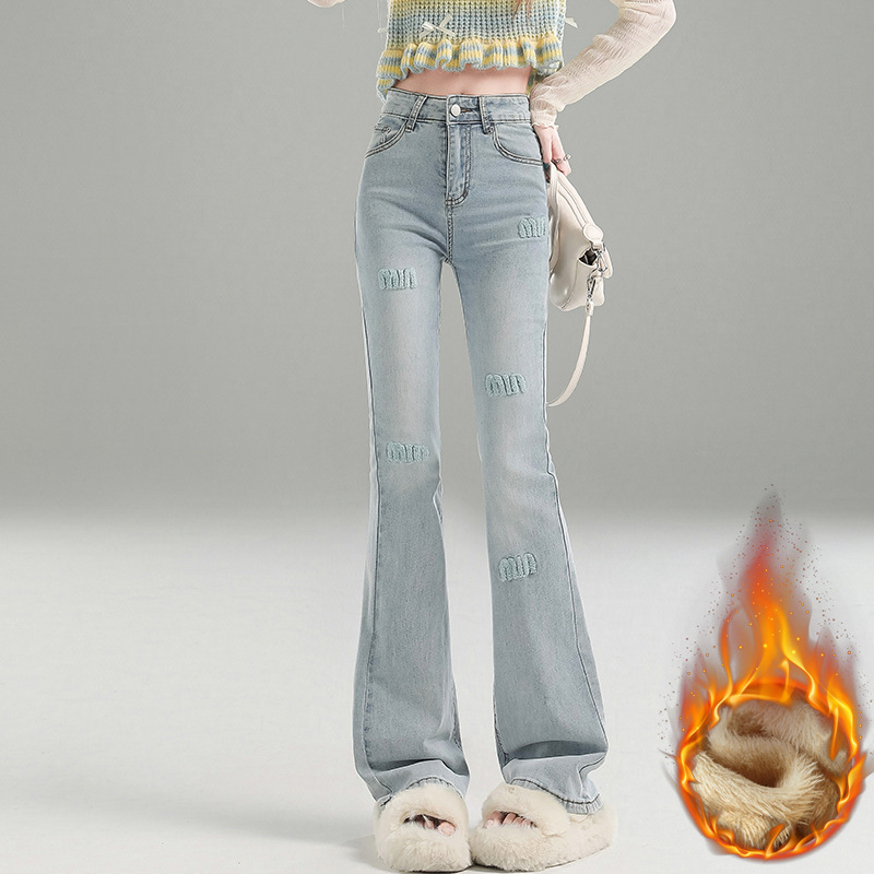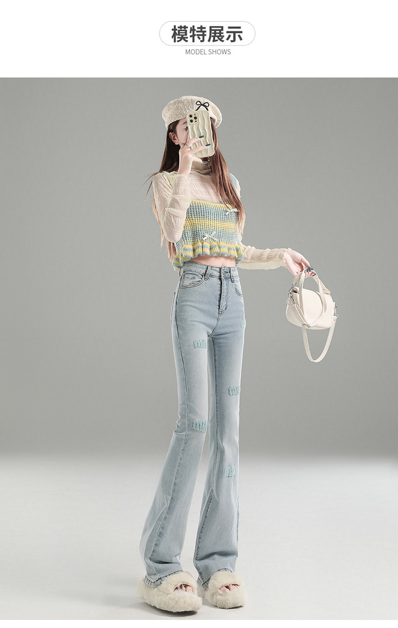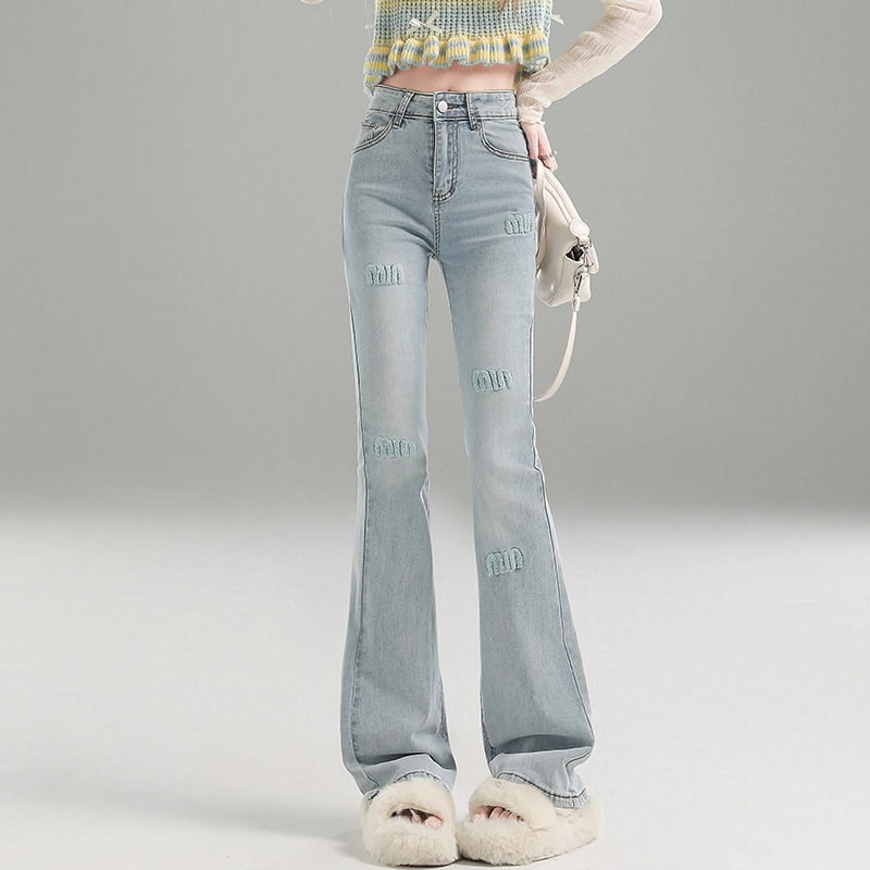 기모 1222 스파이스 소녀 청바지 여성용 봄과 여름 2024 새로운 미국 스타일 높은 허리 슬리밍 캐주얼 플래 팬츠스토어 가기