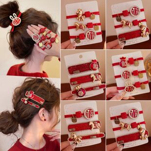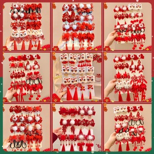 新年摆摊年底爆卖义乌货源批发夹小商品饰儿童女古风红色发饰头饰