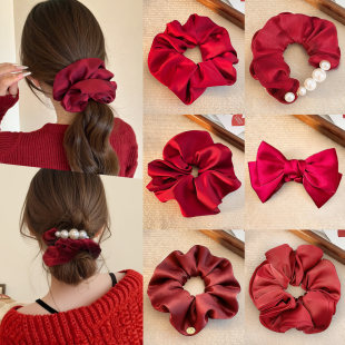 新年红色缎面超大大肠发圈女2025新款扎头发头绳高级感丸子头发绳