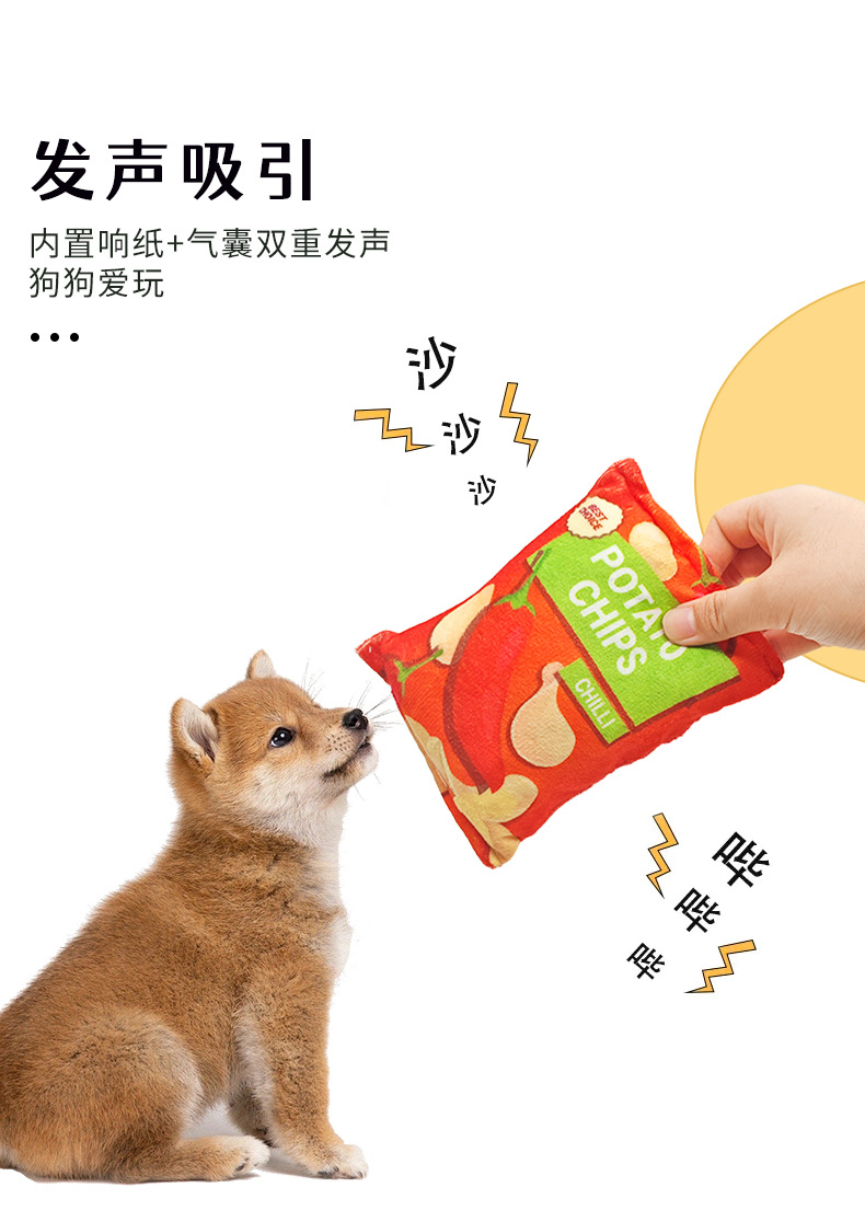 봉제 시뮬레이션 사운드 종이 음성 감자 칩 애완 동물 음성 장난감 개 고양이 테디 소형 개 코기 용품