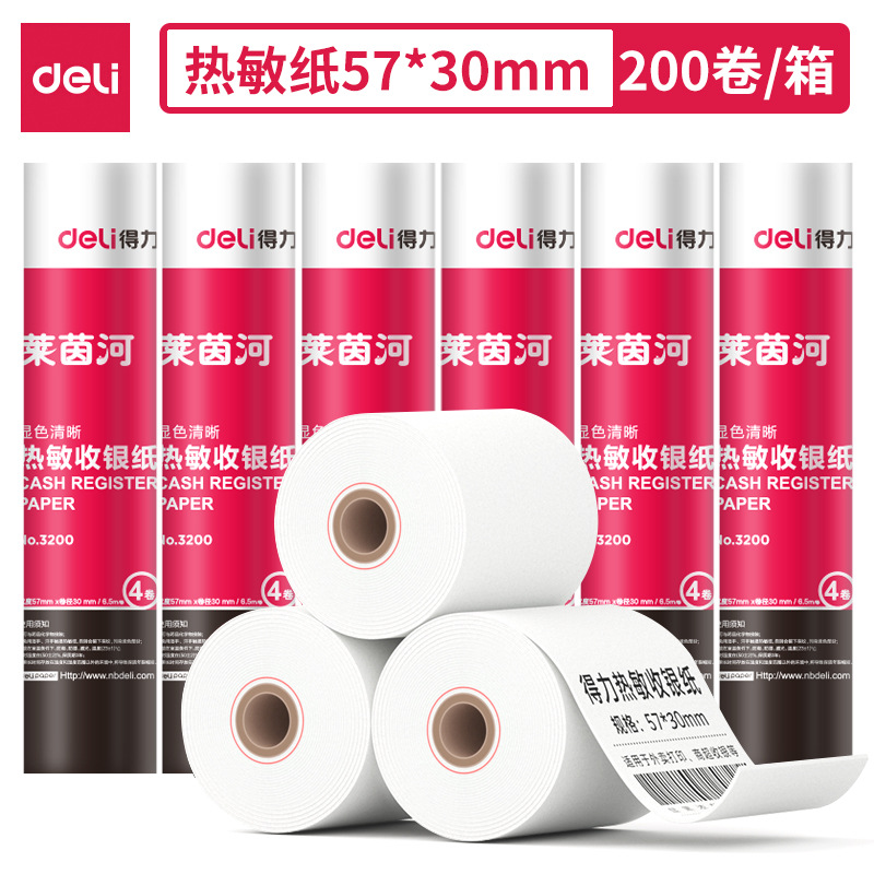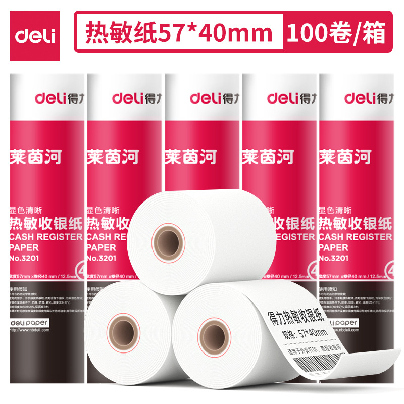 델리 라인 57*50mm 미국 테이크 아웃 슈퍼마켓 영수증 인쇄 용지 100 롤 3202 열 금전 등록기 종이스토어 가기