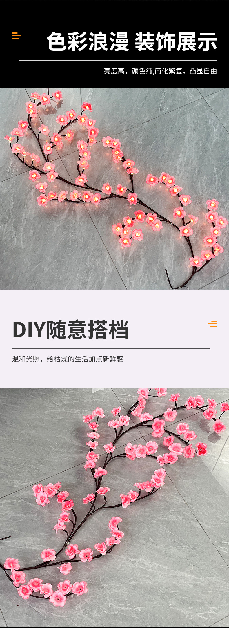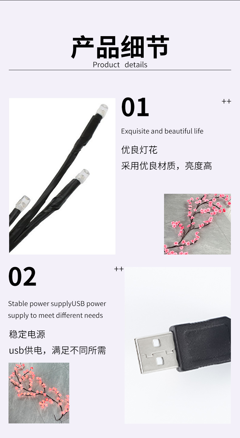 꽃 램프 문자열 USB 분기 꽃 램프 거실 침실 덩굴 나무 램프 꽃 램프 문자열 공장 재고 LED 나무 덩굴스토어 가기