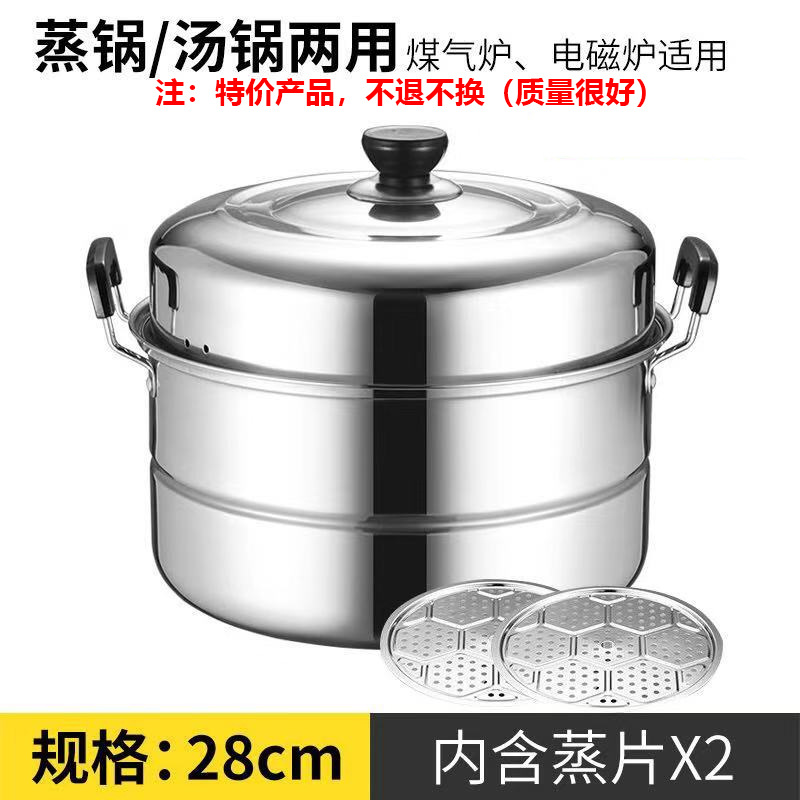 多功能加厚家用礼品锅具三层双耳电磁炉燃气灶通用汤锅不锈钢蒸锅