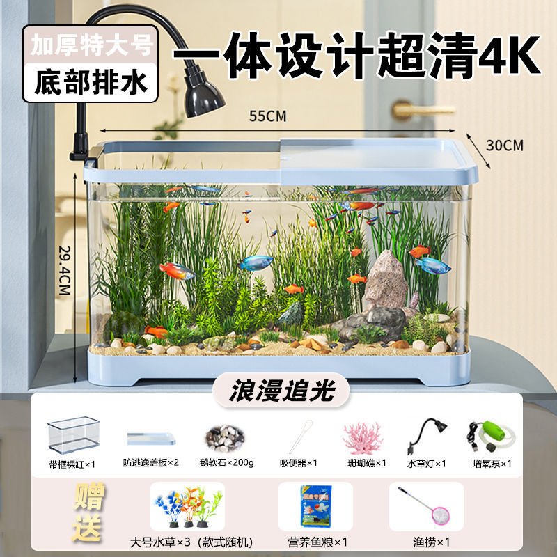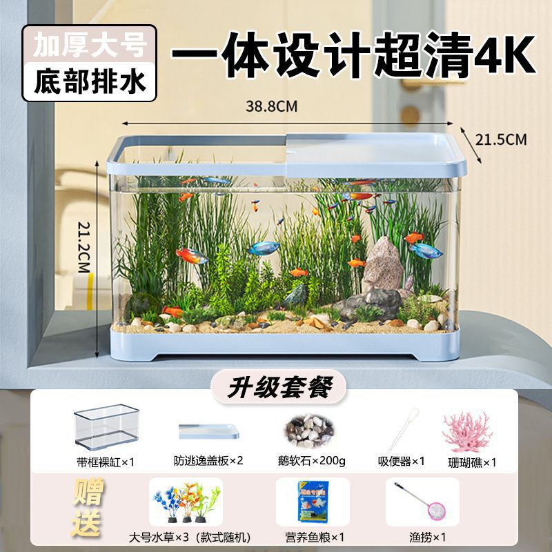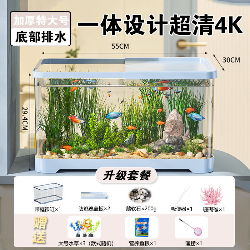 물고기 탱크 수족관 플라스틱 투명한 게으른 금붕어 탱크 거실 발코니 가정 풍경 중소 생태 거북이 탱크