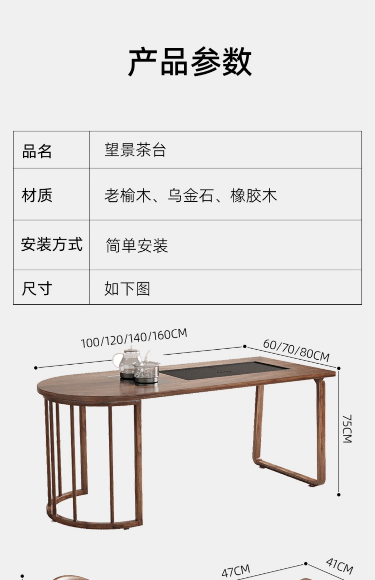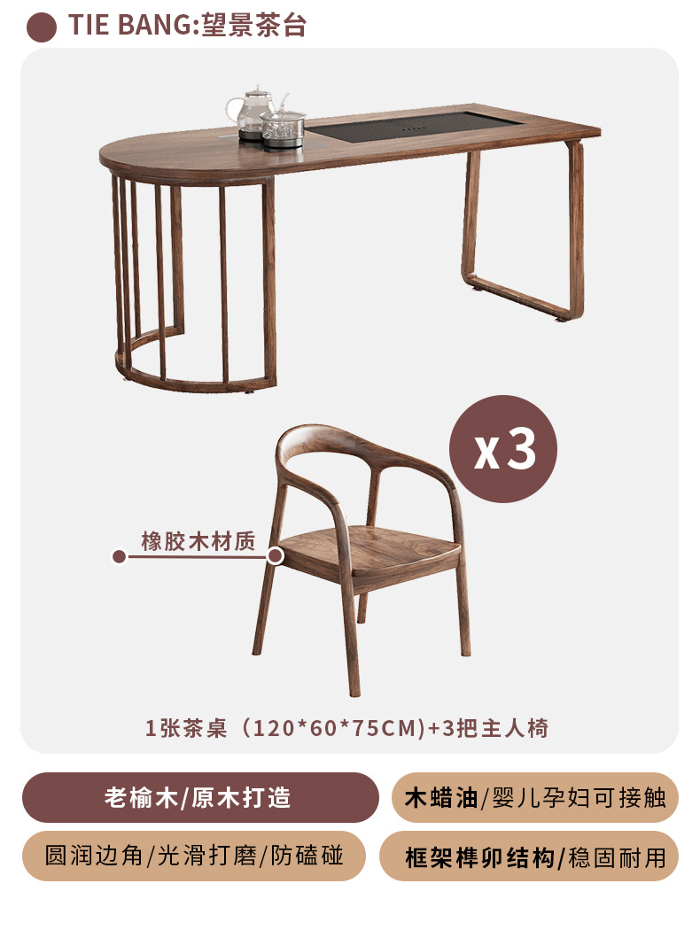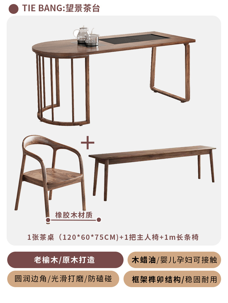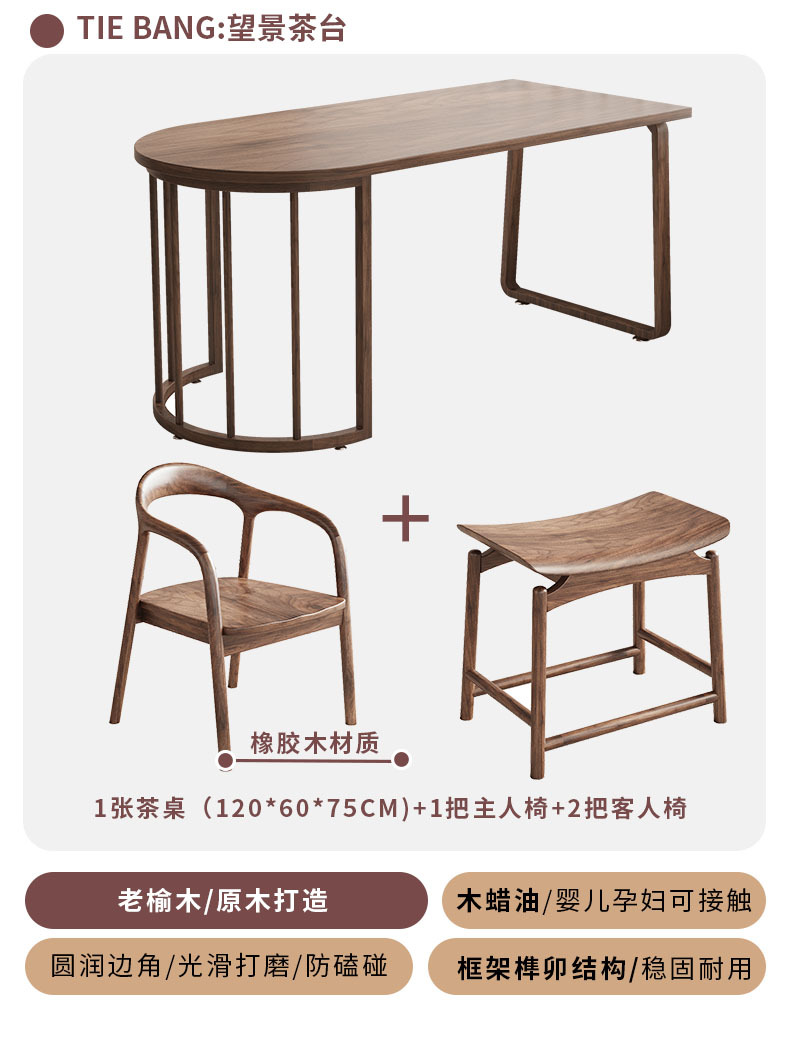 • 왕징 티 테이블 120x60cm + 메인 의자 1개 + 벤치 1개