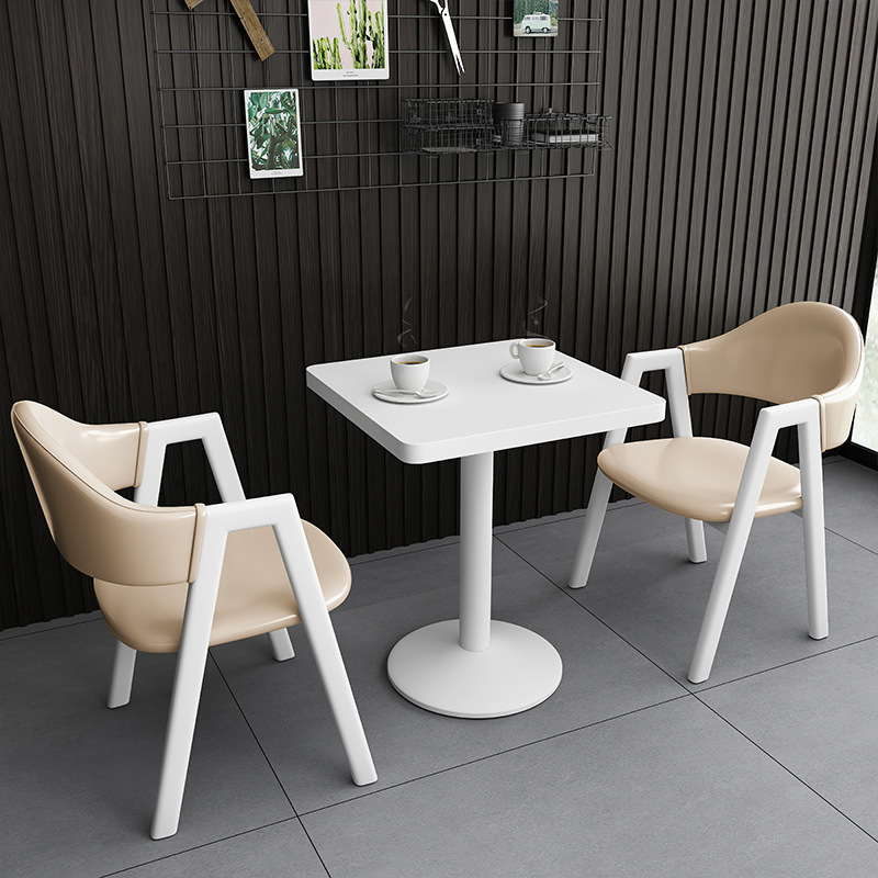• 유백색 가죽 60 흰색 정사각형 테이블 2 가죽 의자