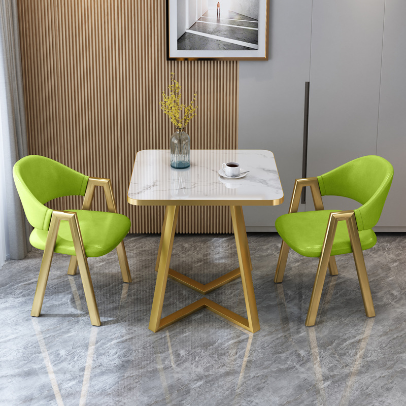 • 형광 녹색 가죽 60 흰색 정사각형 테이블 가죽 의자 2개