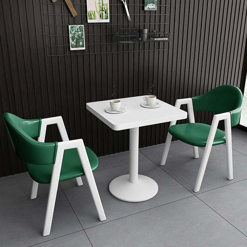 • 짙은 녹색 가죽 60 흰색 정사각형 테이블 2 가죽 의자