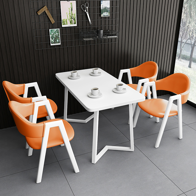 • 오렌지 60 화이트 사각 테이블 가죽 의자 2개