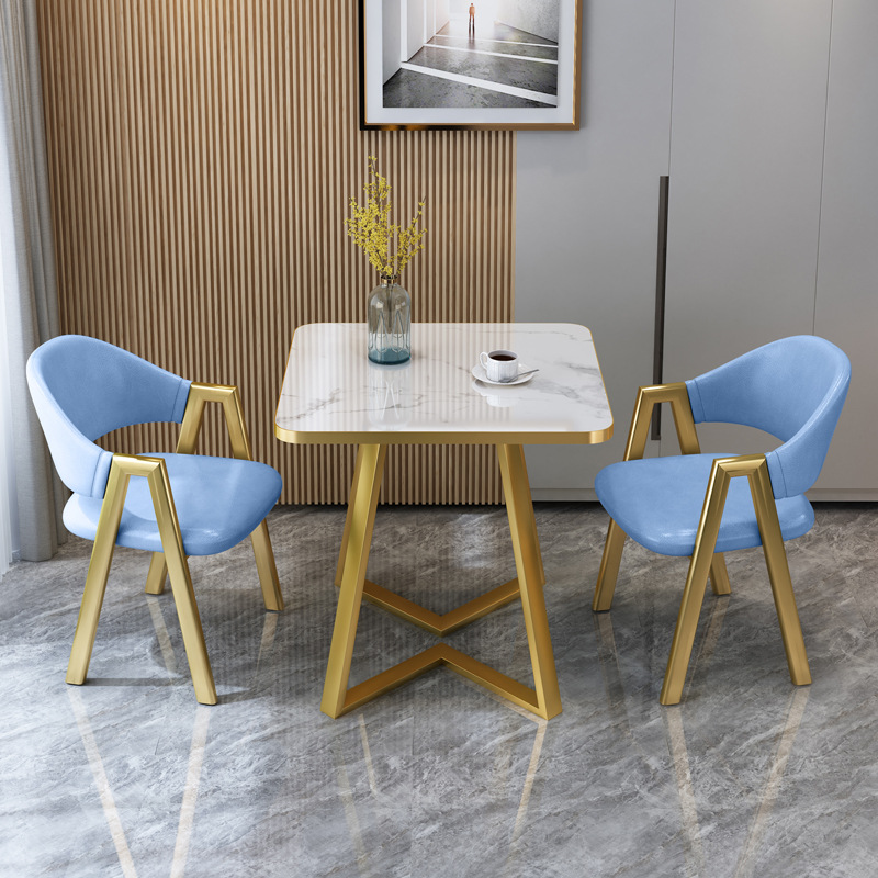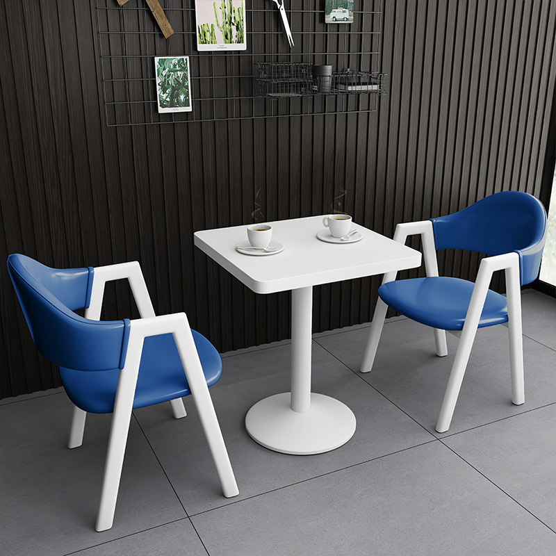 • 블루 가죽 60 화이트 스퀘어 테이블 2 가죽 의자