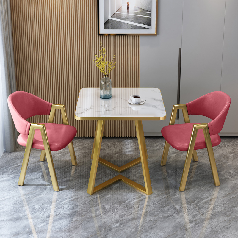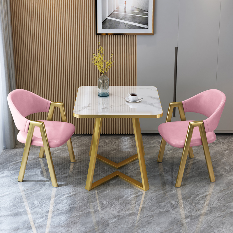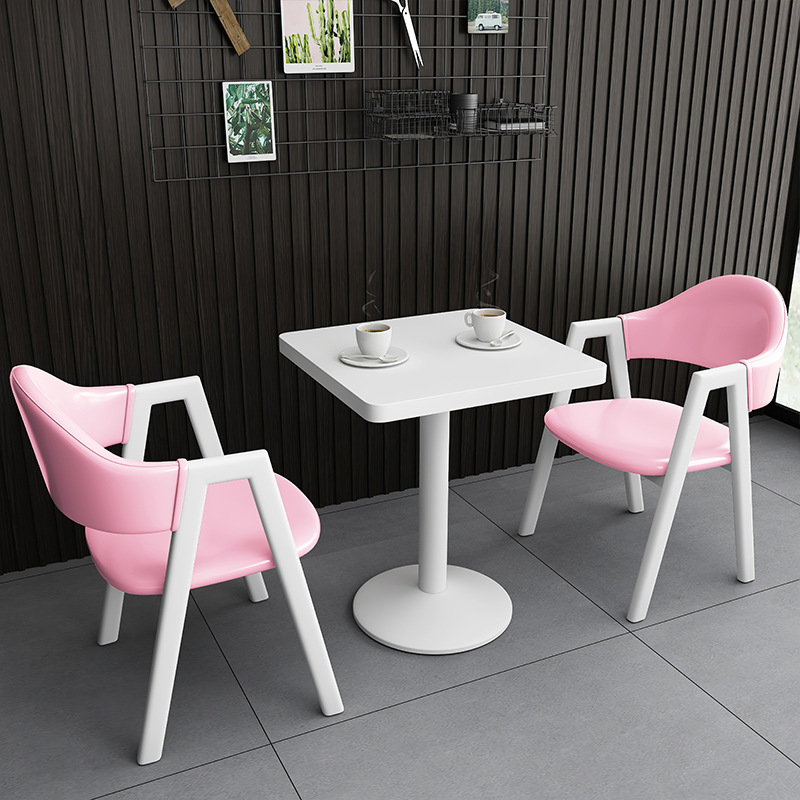 • 핑크 가죽 60 흰색 정사각형 테이블 가죽 의자 2개