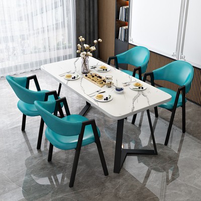 • 도자기 청록색 120*60 테이블 4 가죽 의자