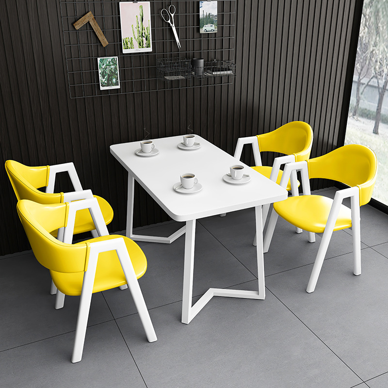 • 밝은 노란색 120*60 흰색 가죽 의자 4개