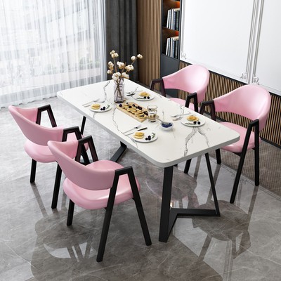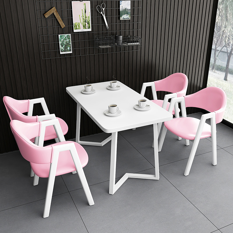 • 눈부신 핑크 120*60 테이블 4 가죽 의자