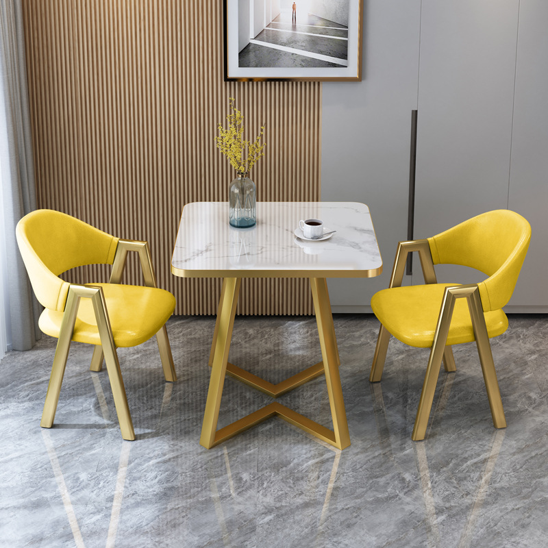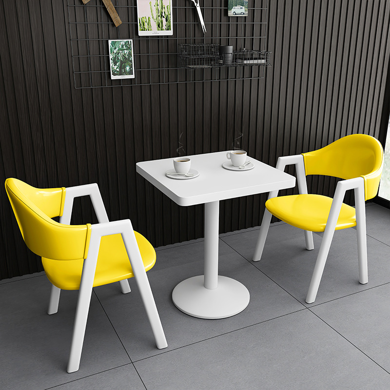 • 노란색 가죽 60 흰색 정사각형 테이블 2 가죽 의자