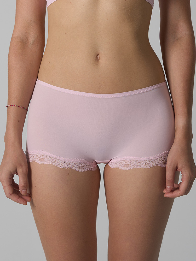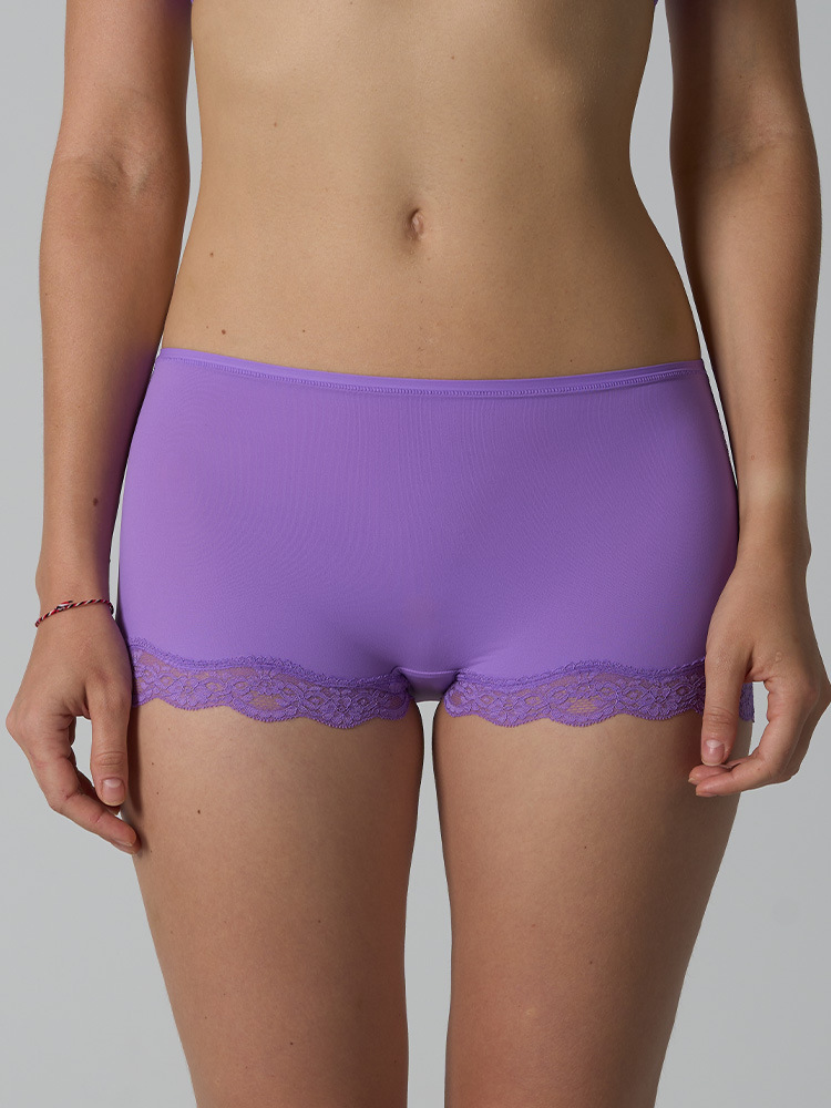 FITS EVERYBODY LACE BOY SHORT 레이스 반바지는 신축성이 뛰어나고 통기성이 뛰어나며 스포츠적이지 않고 편안하며 피부 친화적입니다.