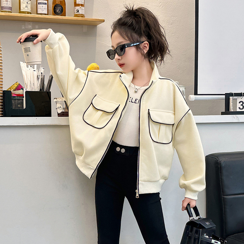 소녀 코트 봄과 가을 서양 스타일 미드 빅 어린이 가을 재킷 2024 새로운 스타일 소녀 가을 쇼트 탑 트렌디스토어 가기