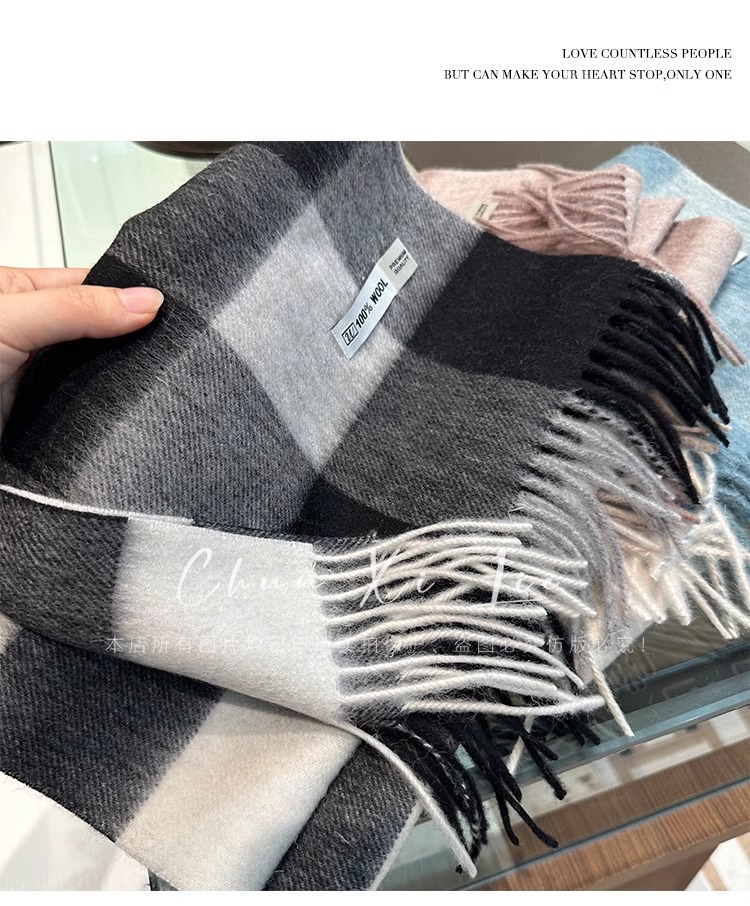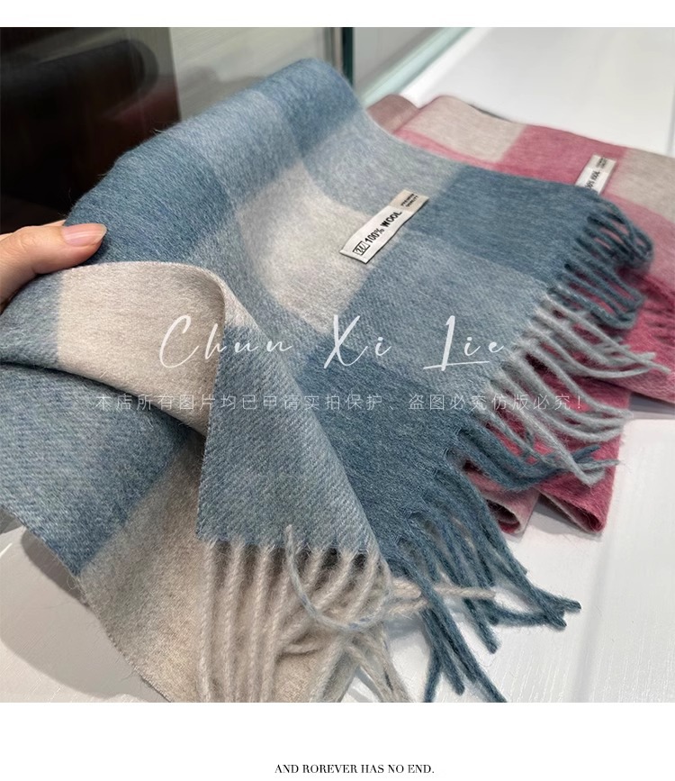 겨울 분위기! 영국 격자 무늬 100% 양모 스카프 여자 겨울 올매치 커플의 따뜻한 목도리 이중 사용스토어 가기