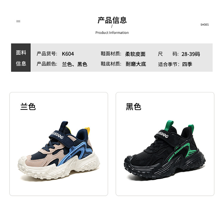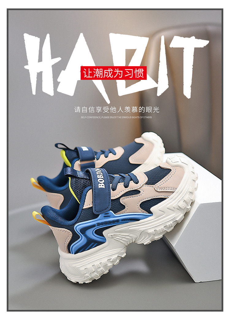 Babu Bean Boys 'Leather 방수 운동화 2024 새로운 봄과 가을 어린이 경량 미끄럼 방지 중식 및 대형 어린이 달리기 신발